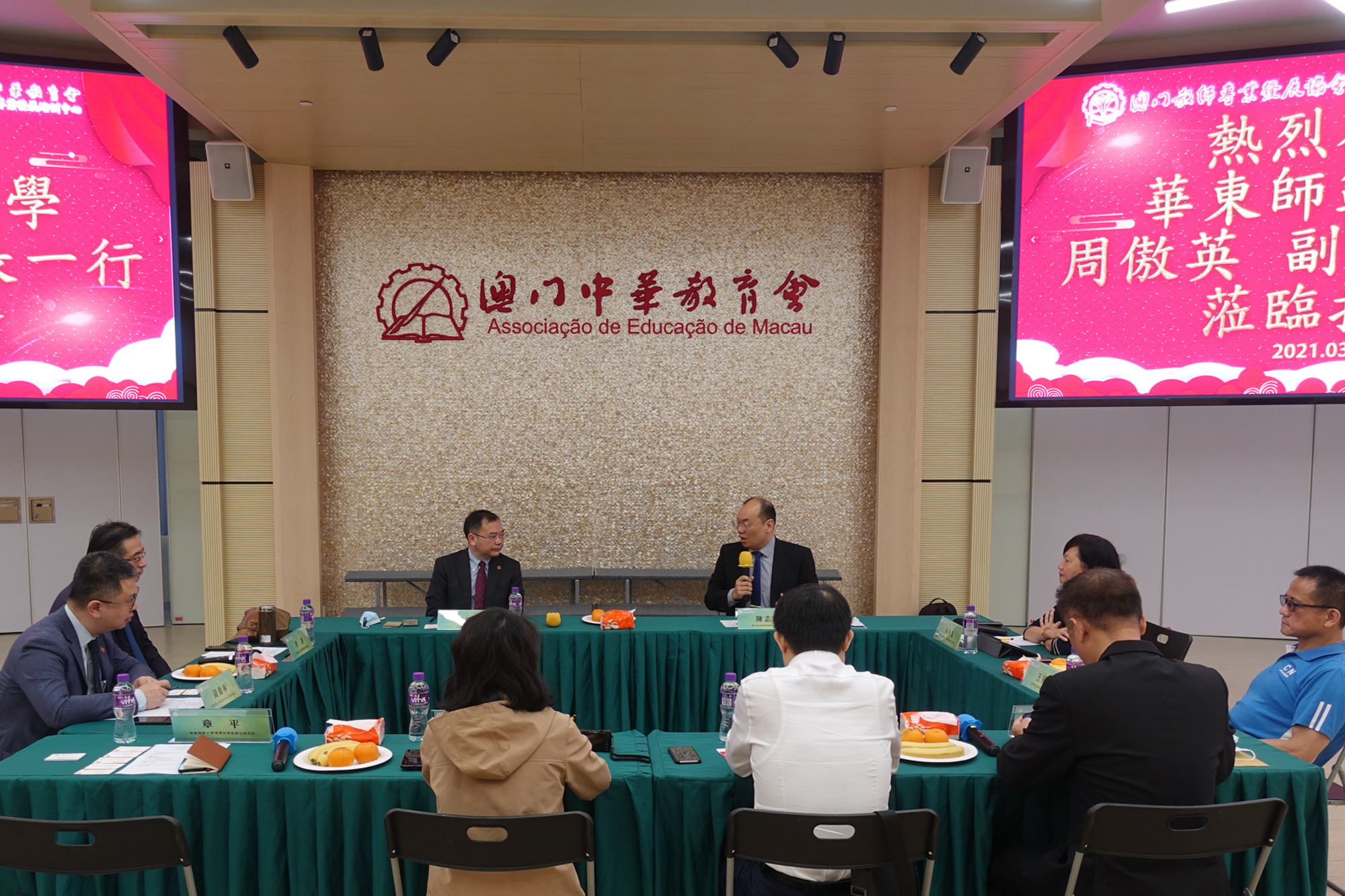 3月30日,代表团访问澳门中华教育会。该会副会长、澳门教师专业发展培训中心校长何少金,该会副理事长兼下属澳门教师专业发展协会理事长陈志峰等接待了周傲英副校长一行。双方共同探讨了各学科在教育领域,如师资培训、职后教育等方面的合作,以期通过高质量的教育项目助力沪澳两地教育的合作与发展。澳门中华教育会成立于1920年,是澳门历史最优秀的文化教育团体之一,致力于弘扬中华文化、推动澳门教育事业。随后,完美网页版代表团顺访了澳门三育中学,实地感受澳门地区中学的教育环境与教育理念的落实与发展。