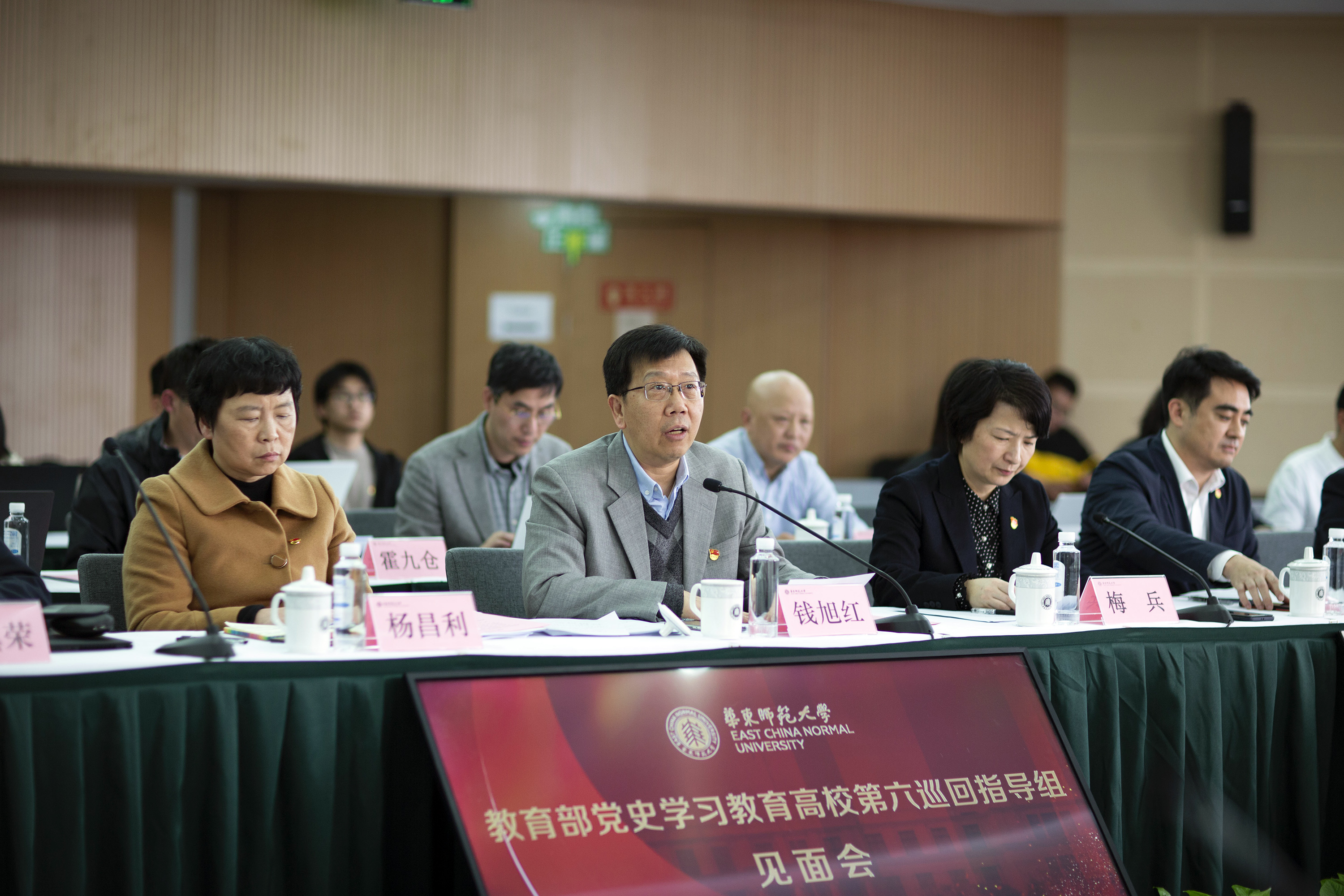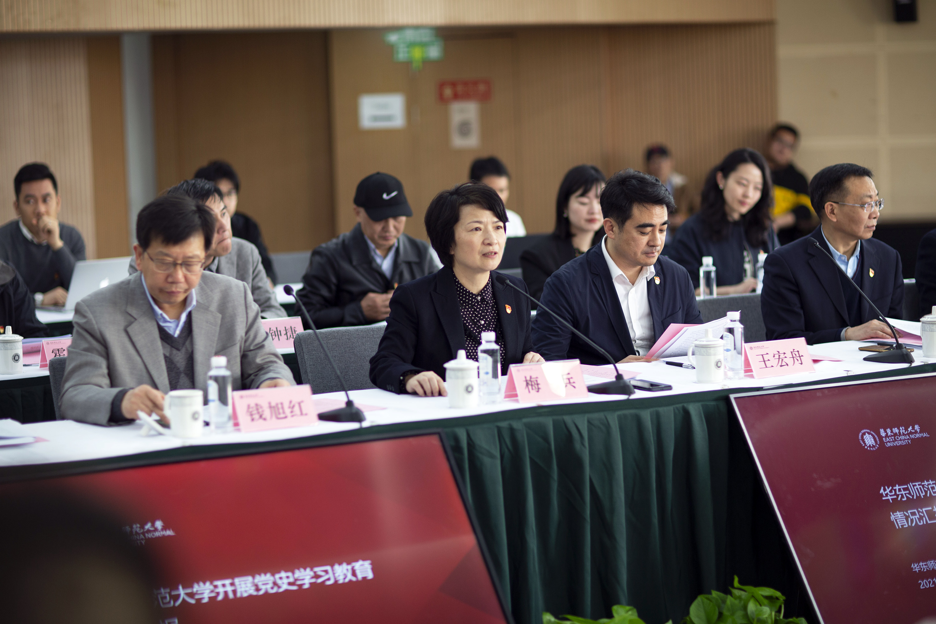 校长钱旭红表示,将以开展党史学习教育为契机,结合迎接建党100周年和建校70周年庆祝活动,认真学习和总结经验,发扬党和学校的优良传统,不断创新工作方式方法,在扎实推进“卓越育人”“卓越学术”两项核心工作中努力取得新的突破,为解决国家、社会和广大群众热切关心的中国教育问题,做出自己独特的贡献,切实承担起“育人、文明、发展”三大使命,努力建设中国特色的世界一流大学,推动党史学习教育真正落地见效。校党委常务副书记王宏舟,校党委副书记杨昌利,校党委副书记、纪委书记曹友谊也分别结合分管工作,就目前开展党史学习教育的工作进展和特色做法等作交流发言。