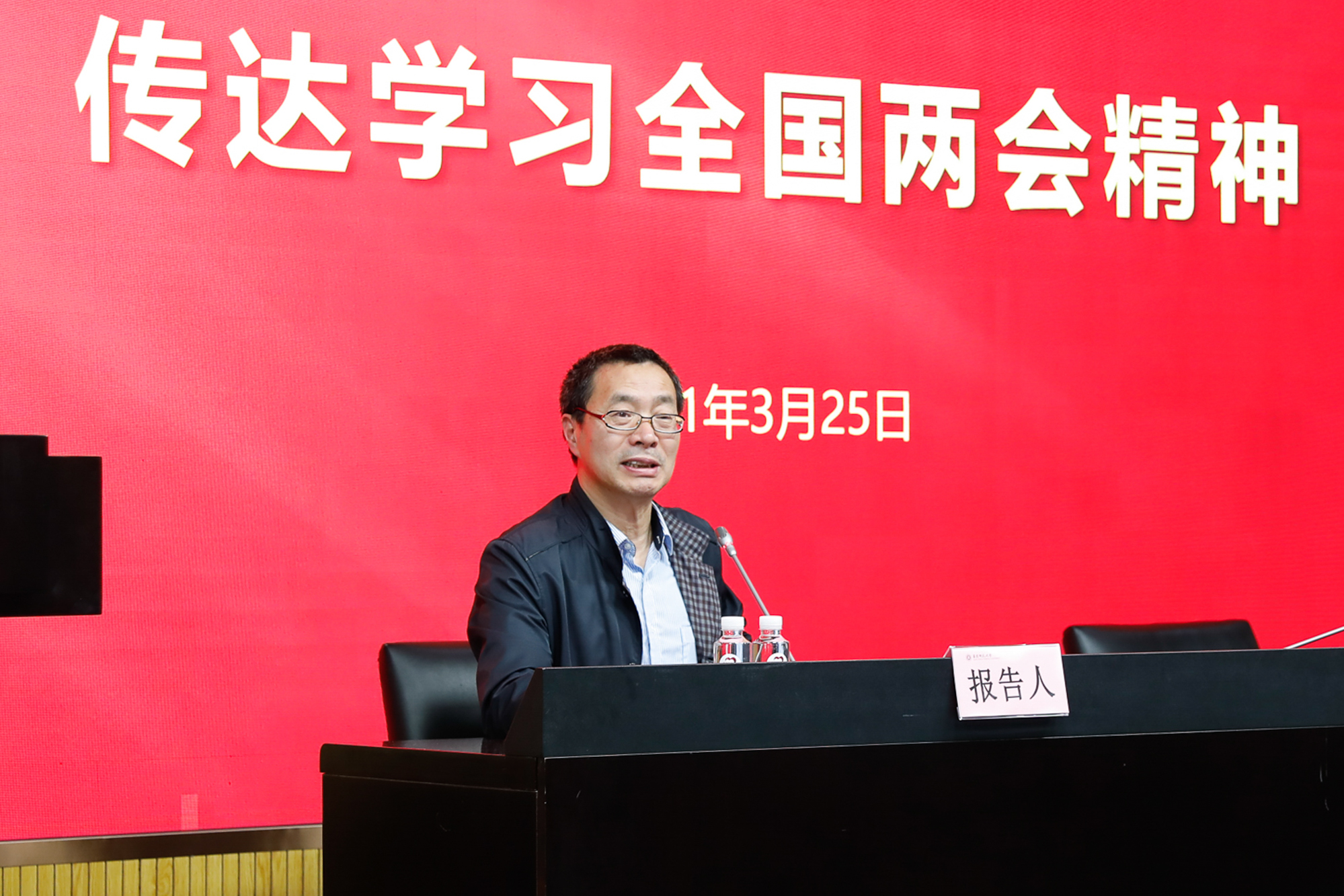 戴立益结合学校工作实际,引原文、举实例,解读了今年政府工作报告中关于教育的内容,讲述了现场聆听学习习近平总书记在全国政协十三届四次会议医药卫生界、教育界联组会上重要讲话精神的体会。
