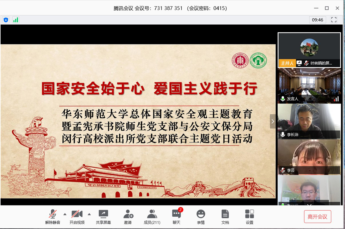 学生工作部主办、孟宪承书院承办的国家安全主题教育活动在“云端”举行