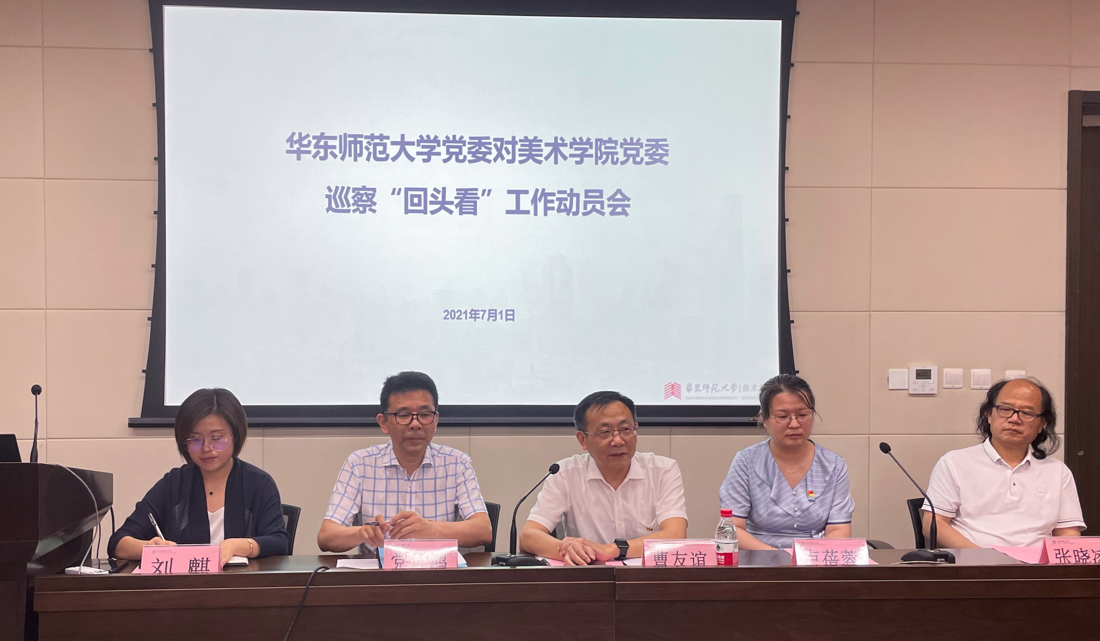为提高校内巡察整改质量,校党委成立校内巡察“回头看”工作组,采用“一拖二”方式,对美术学院和地理科学学院开展巡察“回头看”工作。7月1日、5日,分别召开美术学院和地理科学学院巡察“回头看”工作动员会。