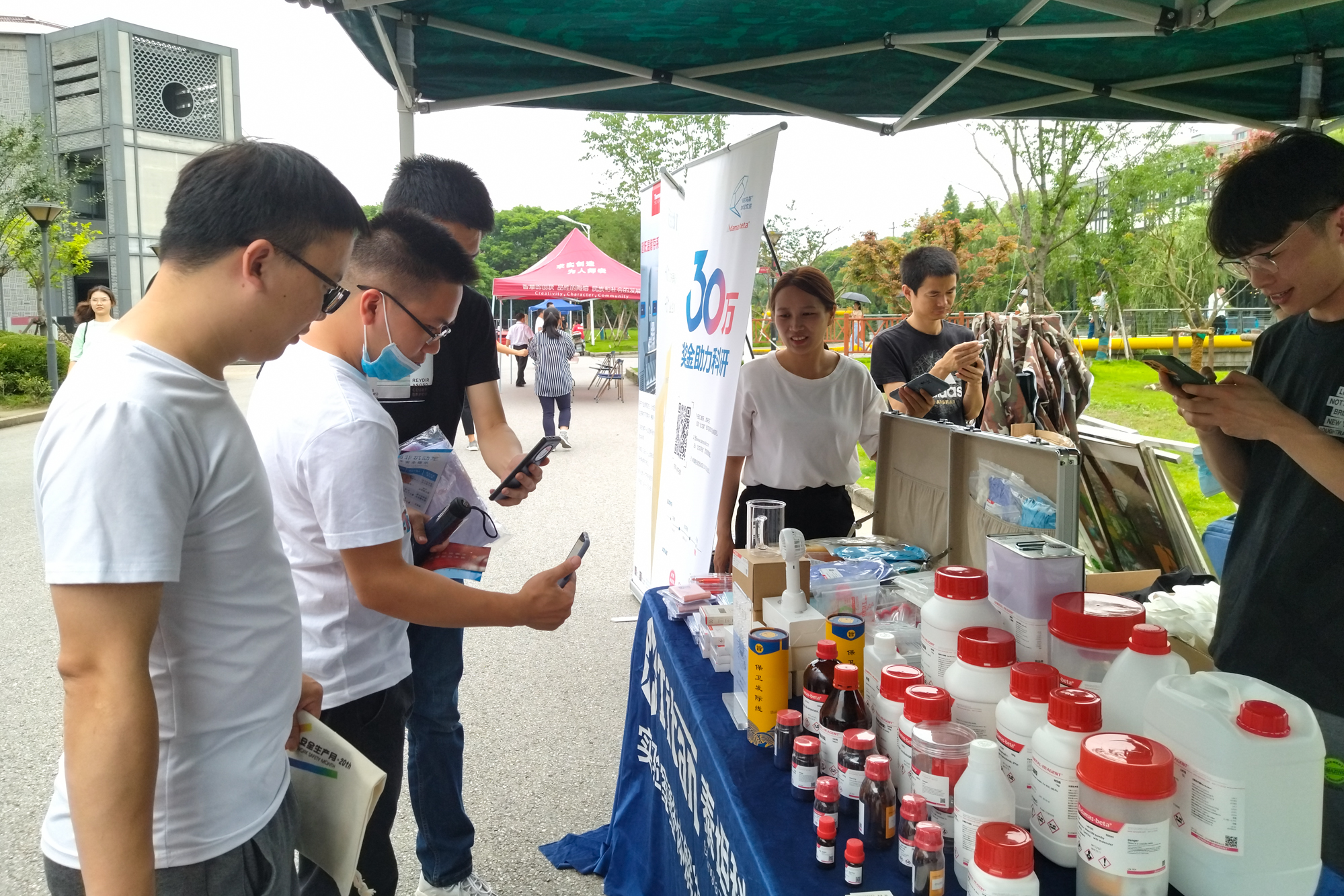 实验室与装备处、保卫处共同承担了宣传咨询日线下活动的现场组织工作,后勤保障部在两校区餐厅区域电子显示屏循环播放安全警示视频和宣传视频,学生(研究生)工作部动员学生参与线上宣传活动,两校区公安民警也受邀来校进行专业指导和帮助。1000余名师生参与了安全宣传展板展示、安全知识竞答、“我为群众办实事”实验仪器现场展示、“实验室安全守护”讲座、消防服穿戴体验、灭火器使用练习等线下活动。