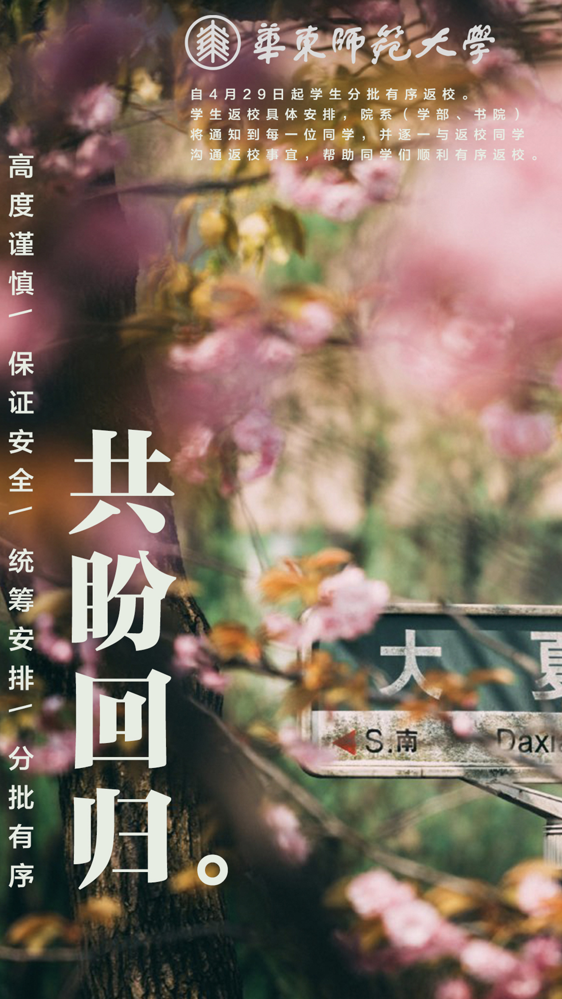 根据教育部、上海市整体部署,结合疫情防控要求,按照学校统筹安排,自4月29日起学生分批有序返校。学生返校具体安排,院系(学部、书院)将通知到每一位同学,并逐一与返校同学沟通返校事宜,帮助同学们顺利有序返校。