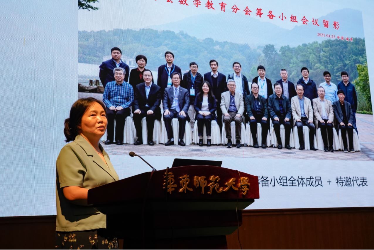 中国数学会副理事长兼中国数学会教育工作委员会主任肖冬梅教授介绍分会的筹备情况