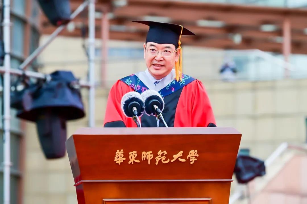 2021届完美网页版毕业典礼上,城市与区域科学学院院长杜德斌教授作为教师代表致辞