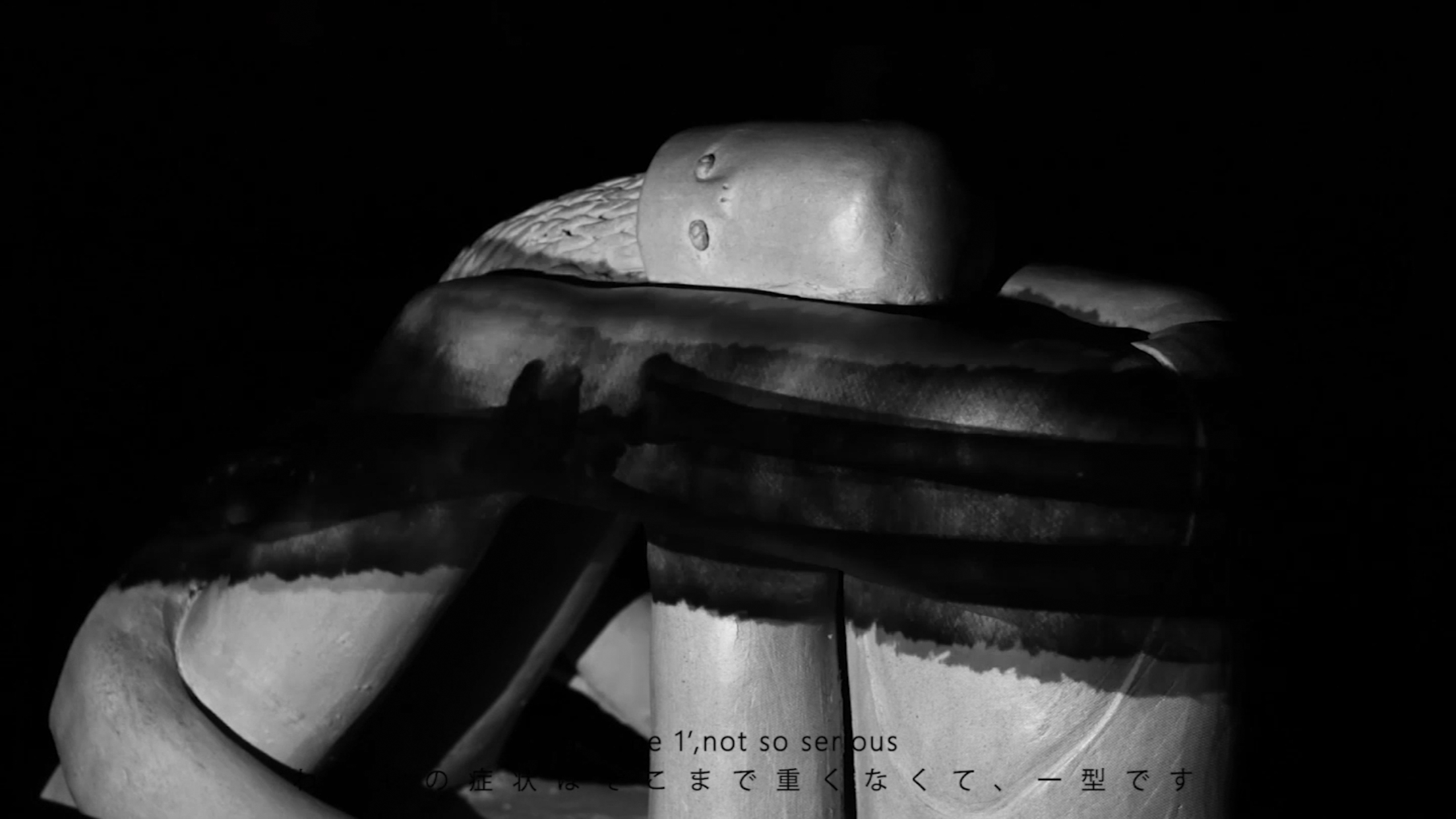 获奖学生动画作品《他她他》基于对先天性无痛症、软骨病、马凡式综合症三种病症的研究,制作了三段纪录片式动画。作者试图把身体作为建立同理心的共有媒介,实现从知觉到个人认知的共情转化。此外,与动画相呼应的雕塑再现了三类病症者的实体形象,成片以投影方式进行视听表达。雕塑作品作为人们对于身体记忆共有连接的媒介,让动画再增加一层触感与联系。这是一件可以实体接触的动画作品,作者希望以此方式增强观众对于三位叙述人在情感上的进一步感知。