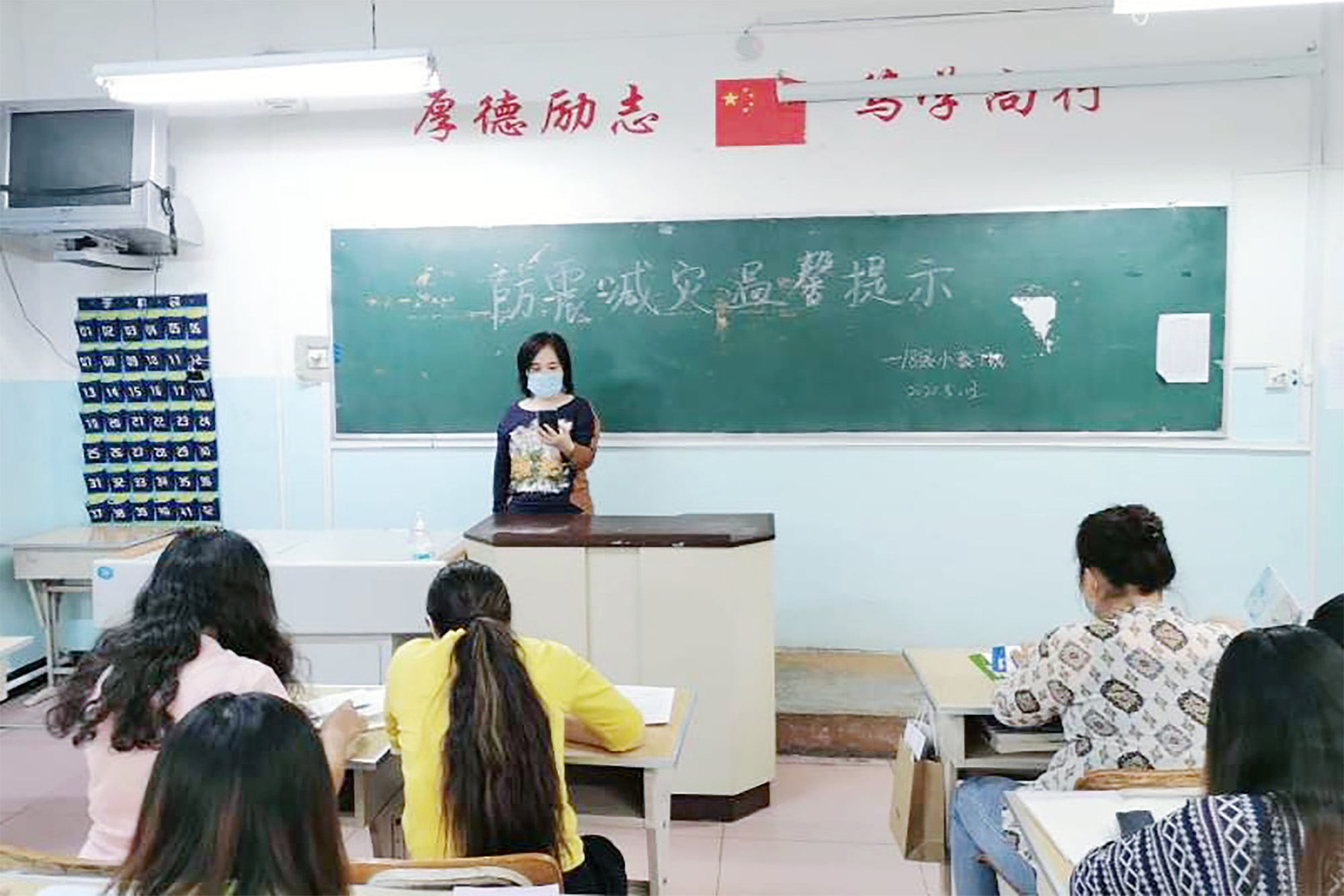 复课后韩蕾老师给学生们讲授防震减灾知识