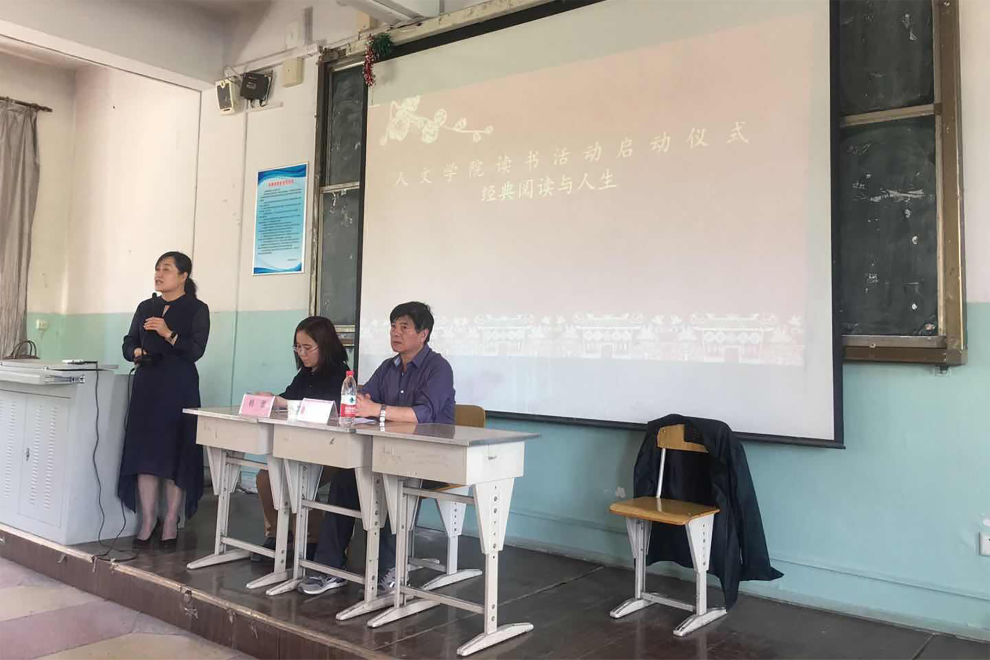 韩蕾老师(左二)在人文学院读书活动启动仪式上