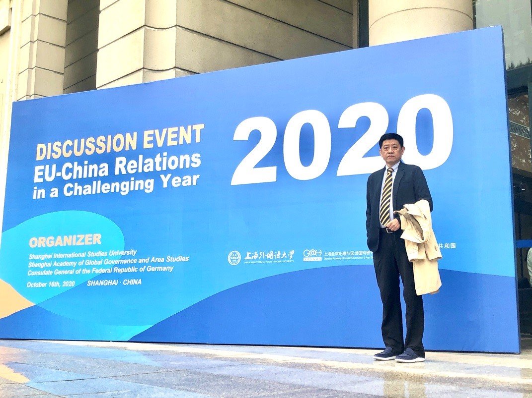 10月16日,上海市人民决策咨询基地领军人物余南平教授受邀参加在上海外国语大学松江校区图文信息中心7楼举办的中欧对话活动“EU-China Relations in a Challenging Year 2020”。