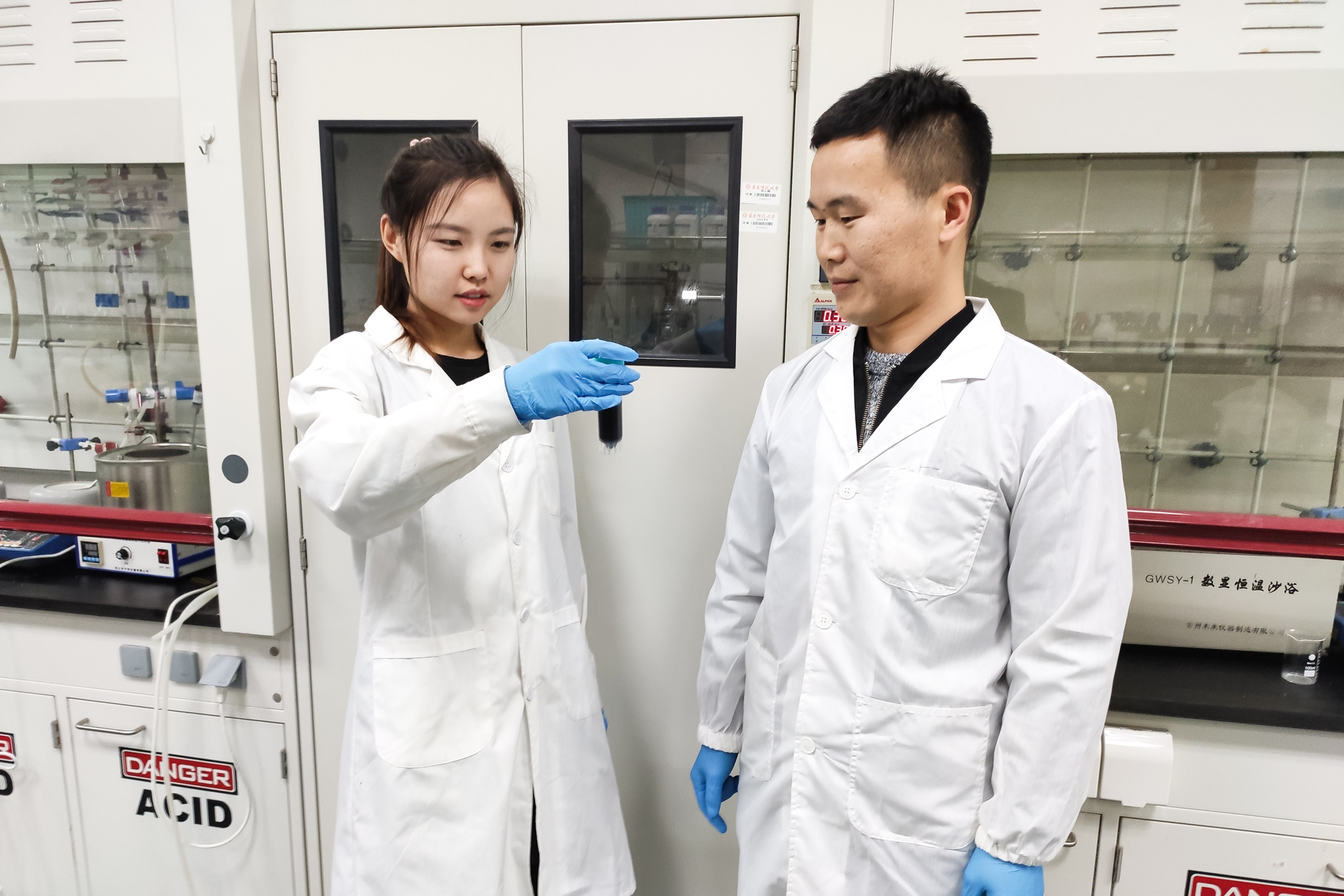 青年教师陈立松博士(右)和团队成员李妍(左)在实验室