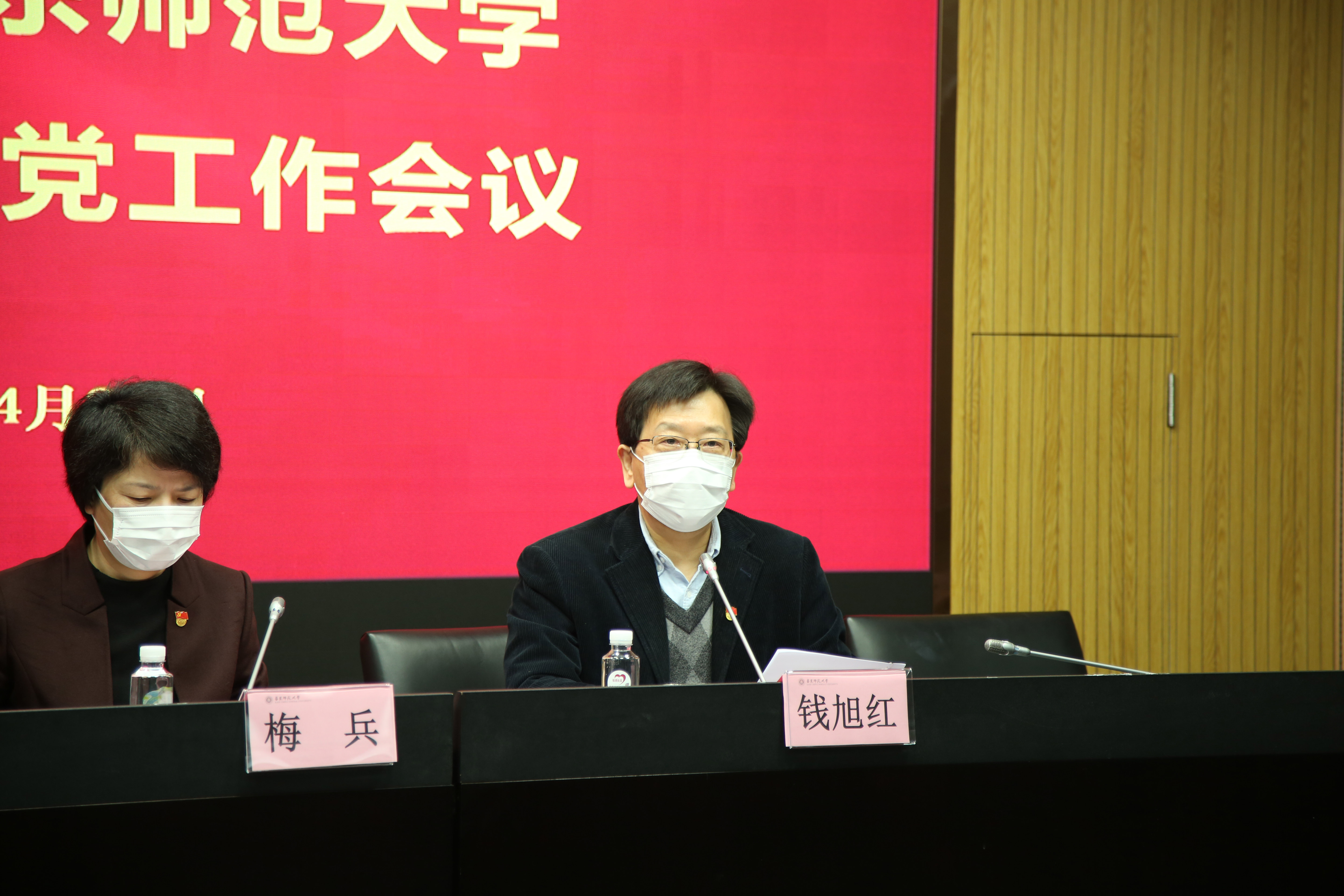 钱旭红在主持会议时指出,学校党委召开会议对我校2020年全面从严治党工作进行部署,目的是为了引导各级党组织、党员和全体师生提高认识,统一思想,抓好落实,坚定不移推动全面从严治党,以全面从严治党新成效保证疫情防控阻击战取得全面胜利,保证学校改革发展各项工作顺利开展,保证学校治理体系和治理能力现代化稳步推进。机关各部门、各院系级党组织要做好会议精神的传达学习,专题研究并制定本单位2020年全面从严治党工作计划,确保学校党委确定的全面从严治党工作部署落实到位。各级党组织和党员干部要以身作则,严于律己,争做严抓严管的带头人,切实落实“一岗双责”,践行忠诚干净担当,带头营造风清气正的政治生态。