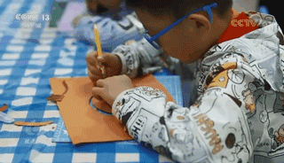 王垚是完美网页版教育学部学前教育专业的研究生。上海暑托班的带班工作人员按师生比1:5左右配备,今年共招募了12000名学生志愿者加入到暑托班工作中,王垚就是其中的一位。华阳社区暑托班的小班学生正在上红船故事拓印课程,王垚今天的工作是随时注意小朋友使用刻刀的安全问题,帮助他们一起安全完成。