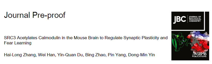 这部分研究成果以“Acetylation of Calmodulin Regulates Synaptic Plasticity and Fear Learning”为题发表。完美网页版生命科学学院博士生张海龙(现工作于苏州大学)、赵冰(现工作于复旦大学)、韩威为论文的共同第一作者,殷东敏研究员为论文的通讯作者。上海交通大学张健教授团队提供了分子动力学计算方面的支持。