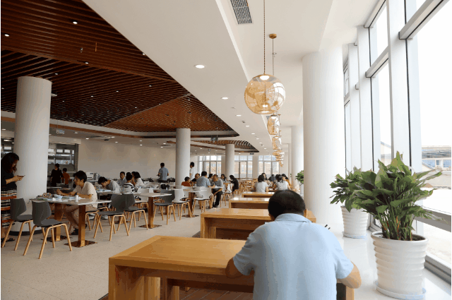 一楼餐厅明亮大气,满足师生基本餐饮需求。新增讨论区,为师生提供更多的学习和交流空间。