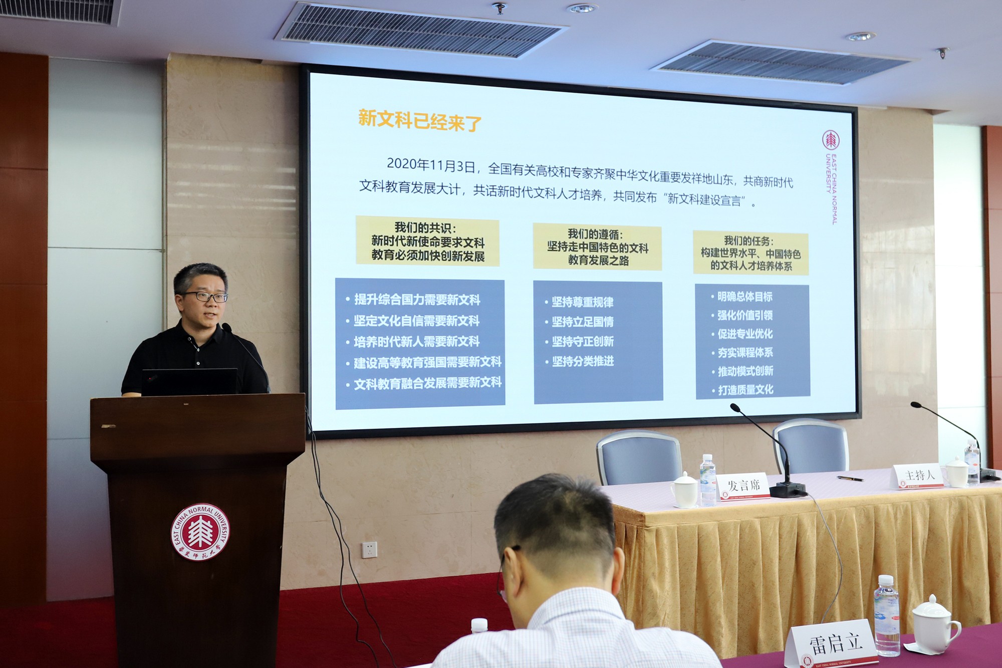 随后,中国语言文学系副系主任汤拥华以“面向新文科的文史哲融合与虚拟教研室建设”为题,分享了文史哲专业如何在守正创新中推进新文科建设工作。软件工程学院副院长张敏以“主线思维与底线保证——新工科下的软件工程专业人才培养”为题,分享了入选首批“国家级一流本科专业建设点”的软件工程专业,其依托新工科建设工作所开展的人才培养改革。心理与认知科学学院副院长李先春老师以“强化跨学科能力达成,培育心理学卓越人才”为题,分享了最新入选“教育部基础学科拔尖学生培养计划2.0基地”的心理学耀翔班的培养与探索。教师教育学院副院长汪晓勤以“数史揽胜,思维育人”为题,分享我校通识教育重点打造的“人类思维与学科史论”课程群的教学经验与教学成效。