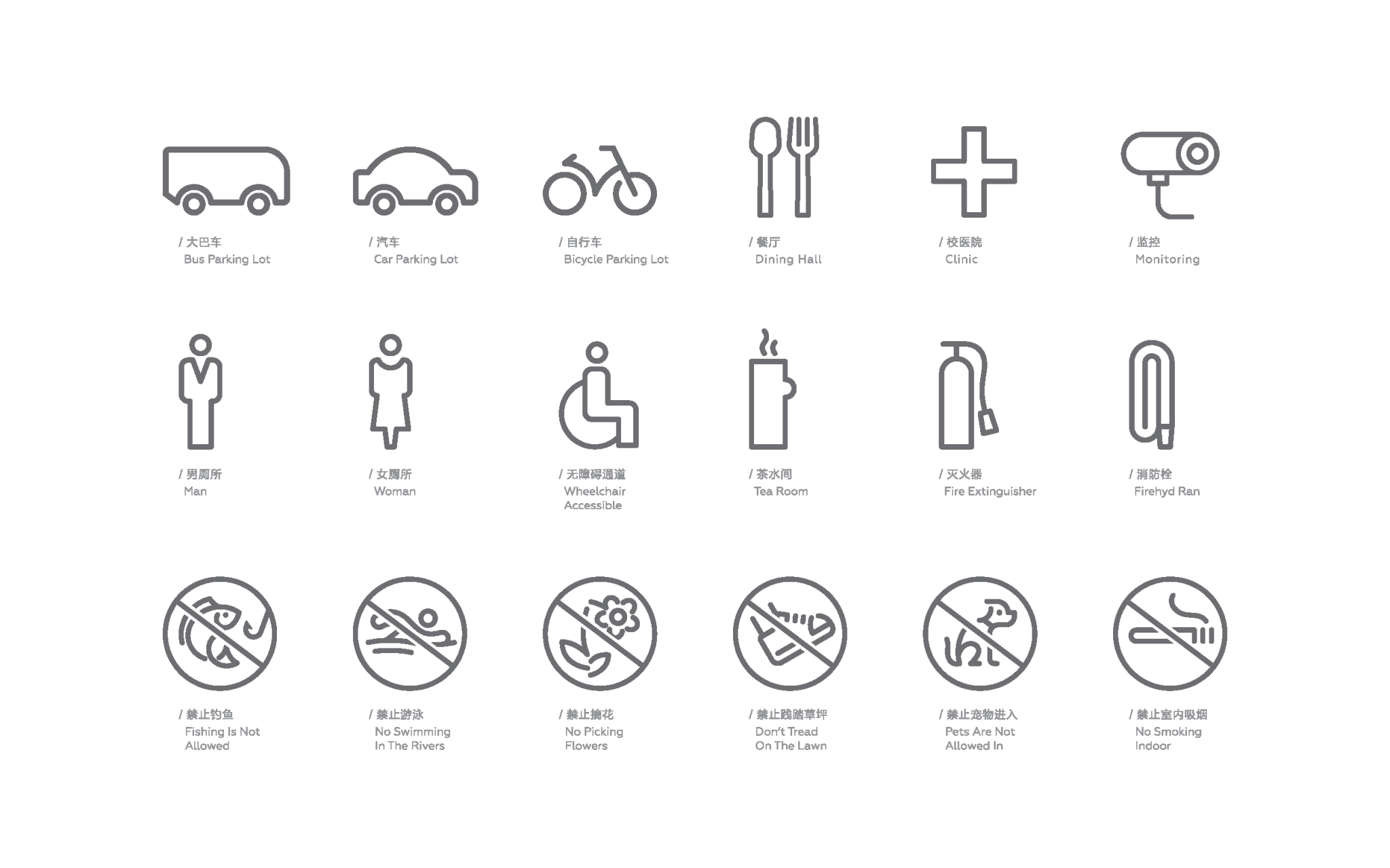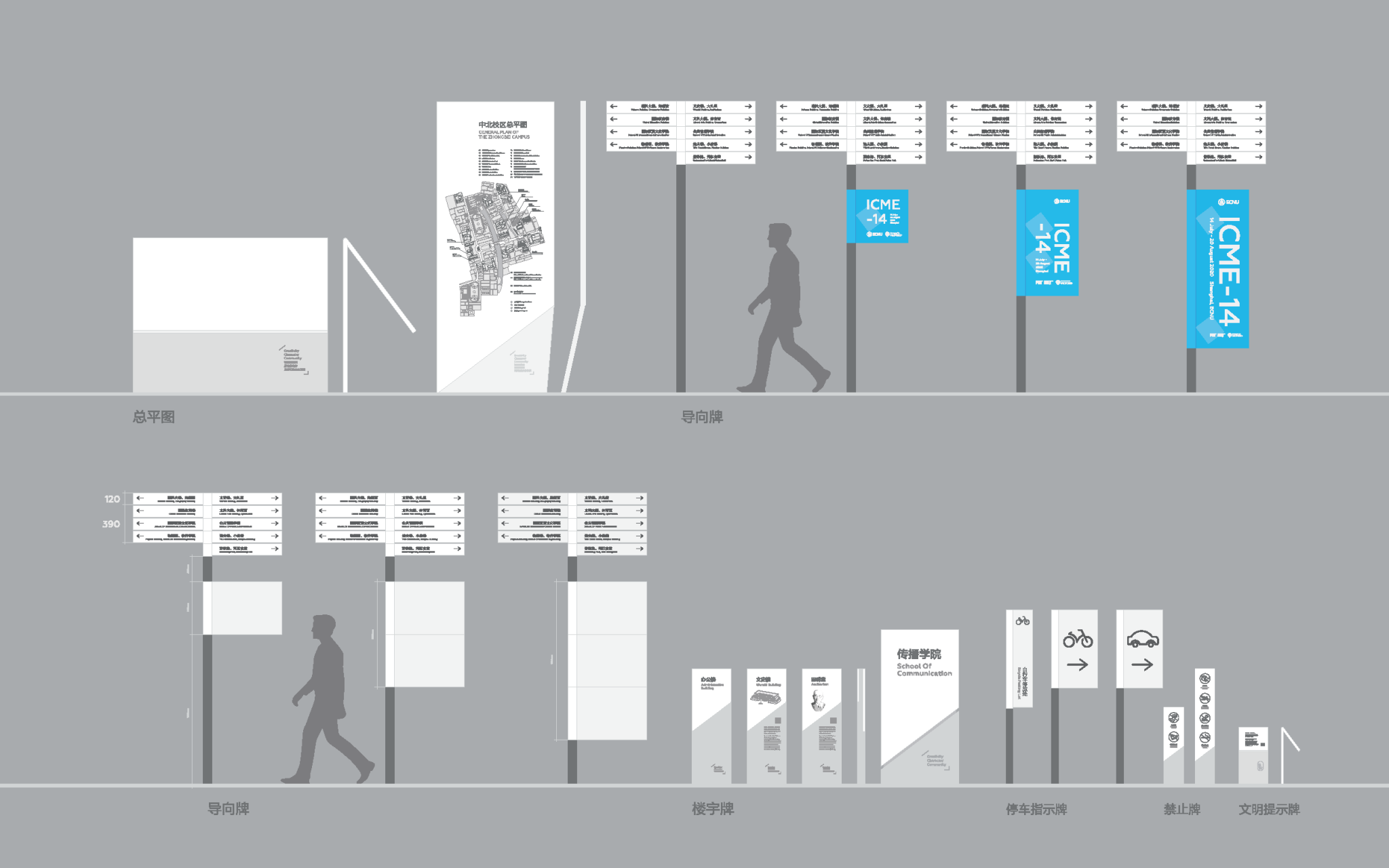 通过这样的梳理,最终确定了标识系统的组成包括:总平图、导向牌、楼宇牌、警示牌、提示牌等。并据此,进行区别设计。
