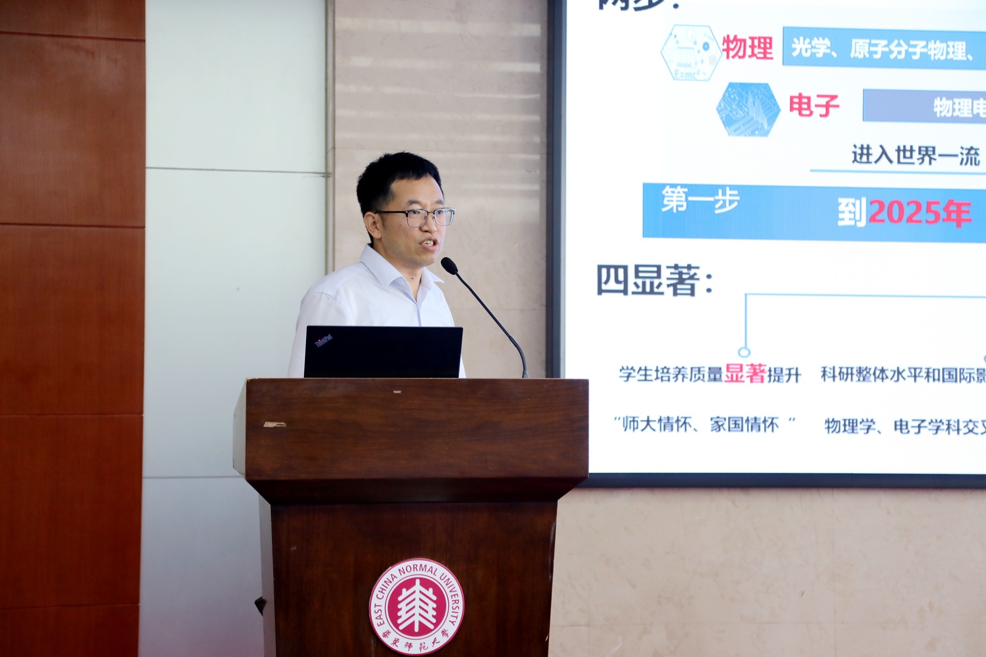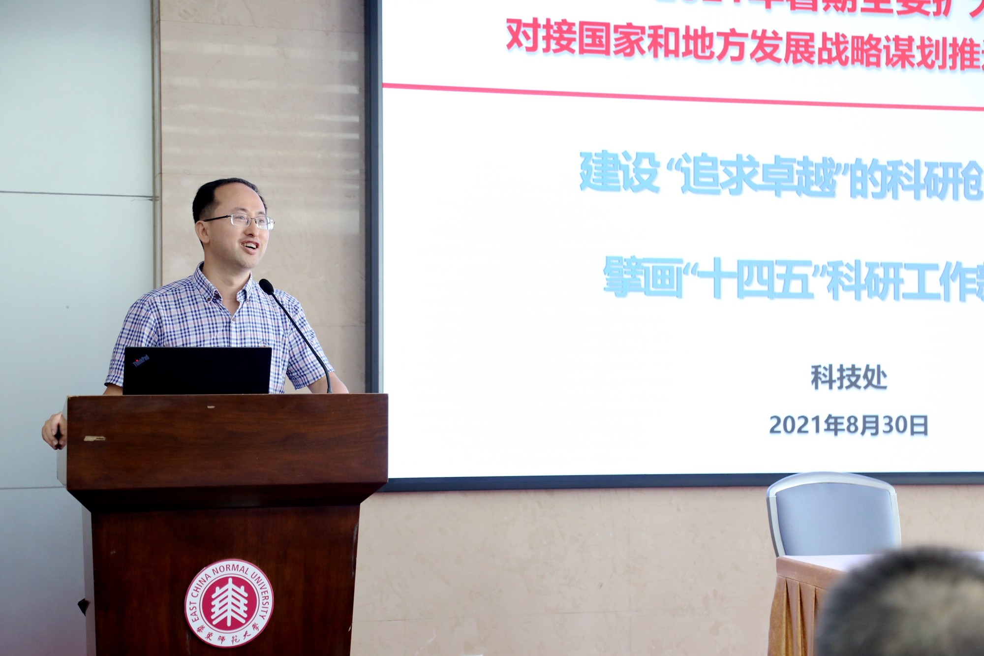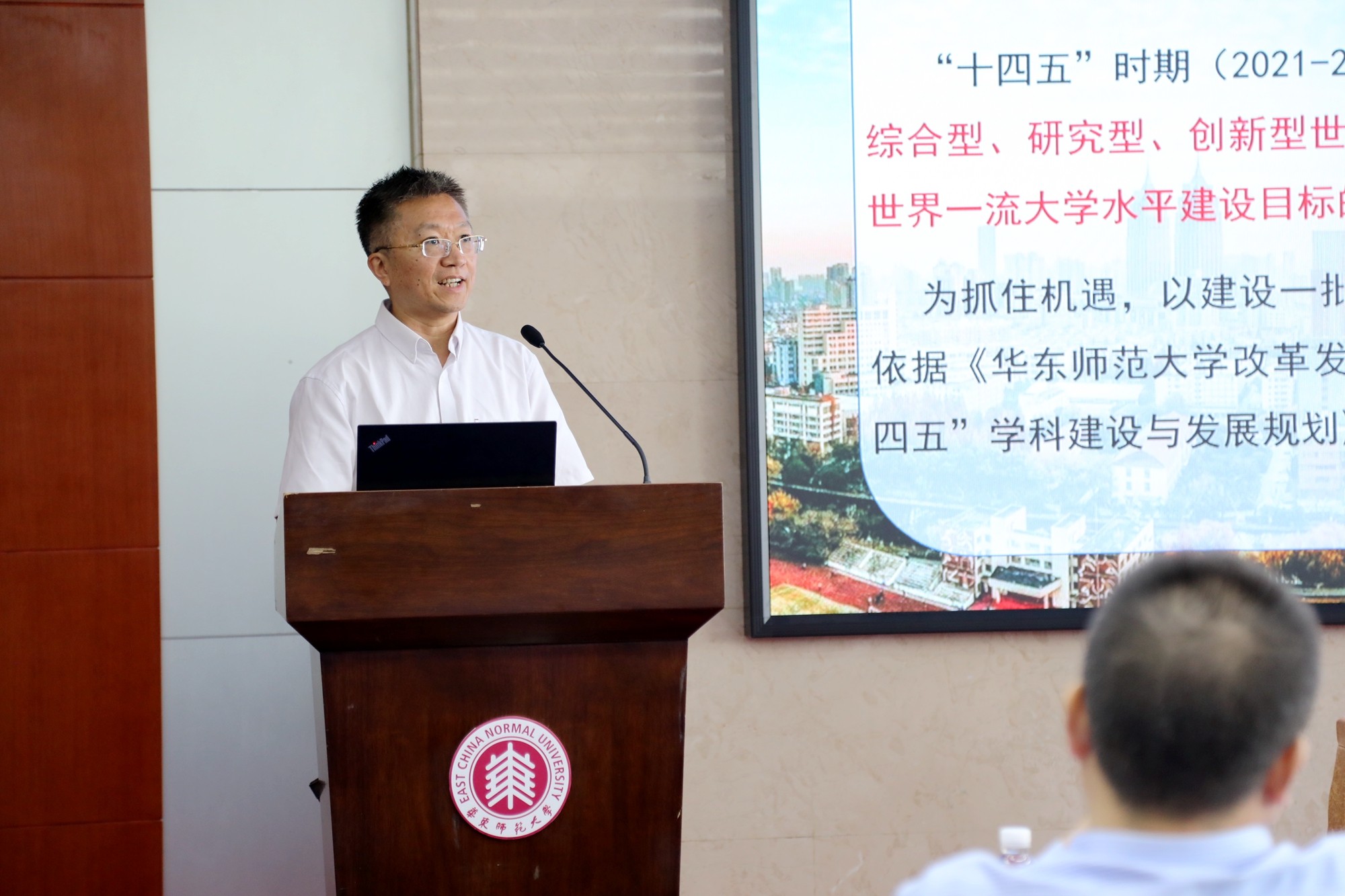 之后,先后在校党委副书记曹友谊和副校长顾红亮的主持下,学校发展规划部部长兼重点建设办公室主任段纯刚、人文与社会科学研究院院长朱军文、科技处处长杨海波、中文系系主任文贵良、物理与电子科学学院副院长武海斌围绕“对接国家和地方发展战略谋划推进‘十四五’”作了主题发言。