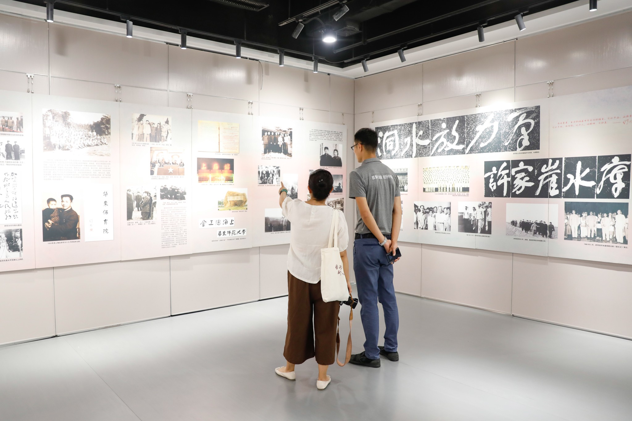 在现场,师生们通过观看舒同的革命与翰墨生涯展、舒安和舒晚的书画作品等,学习展品背后的故事,了解了党领导高等教育事业发展的动人故事。