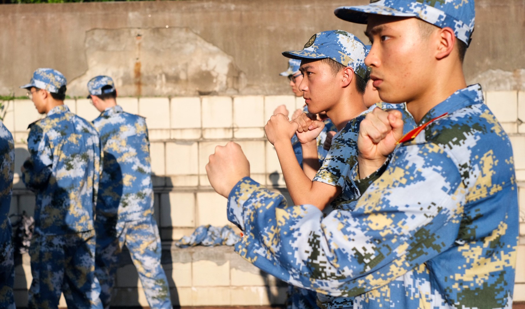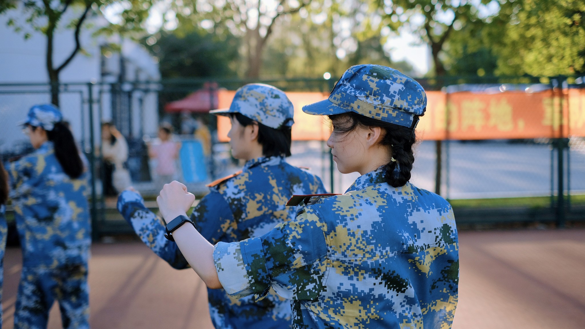 为期五天的线下实训正值“秋老虎”发威,尽管连日骄阳似火,但同学们身着蓝色迷彩军训服,在教官的带领下表现了良好的精神风貌。除了立正、齐步走、军体拳等日常训练,本次军训还融入了队列考核、定向越野等实训内容,形式更加丰富。