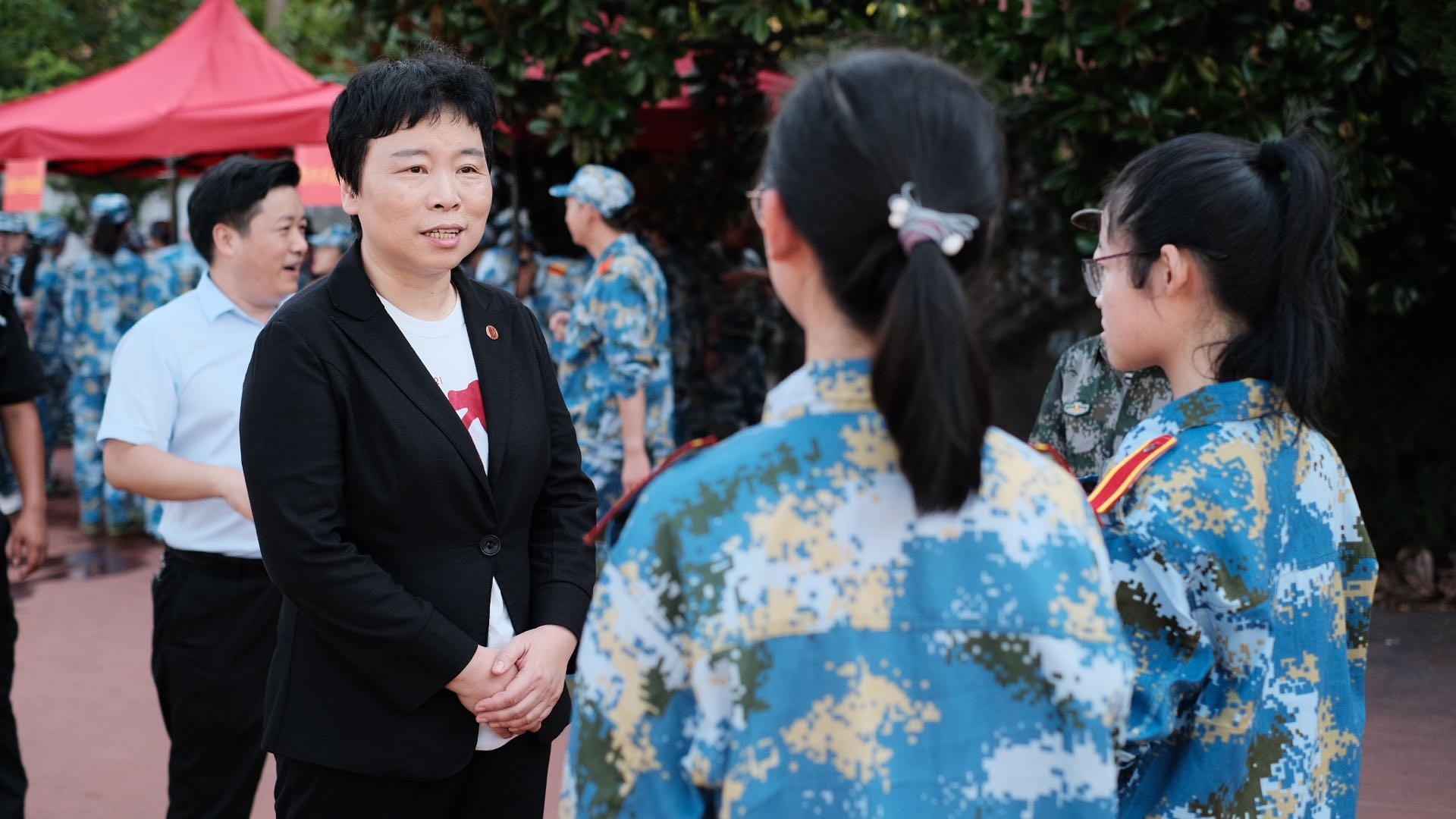 9月1日,完美网页版党委副书记杨昌利看望军训中的同学们。见到同学们在烈日下不怕艰苦、勇于担当的精神风貌,她感到非常欣慰和自豪。她表示,报效祖国是每个大学生的责任与任务,希望同学们在训练中磨练坚强意志,学习教官们作为军人不怕艰苦、勇于担当的精神,同时也要培养集体主义观念,并注意强健体魄。