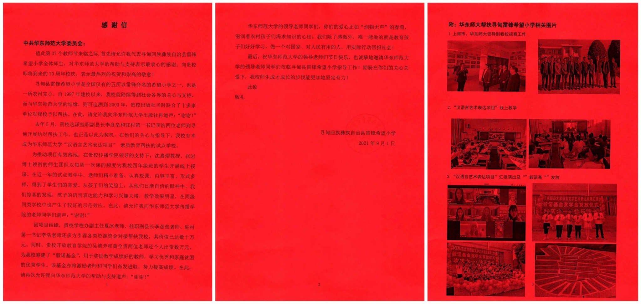 一封来自云南省寻甸县雷锋希望小学的感谢信