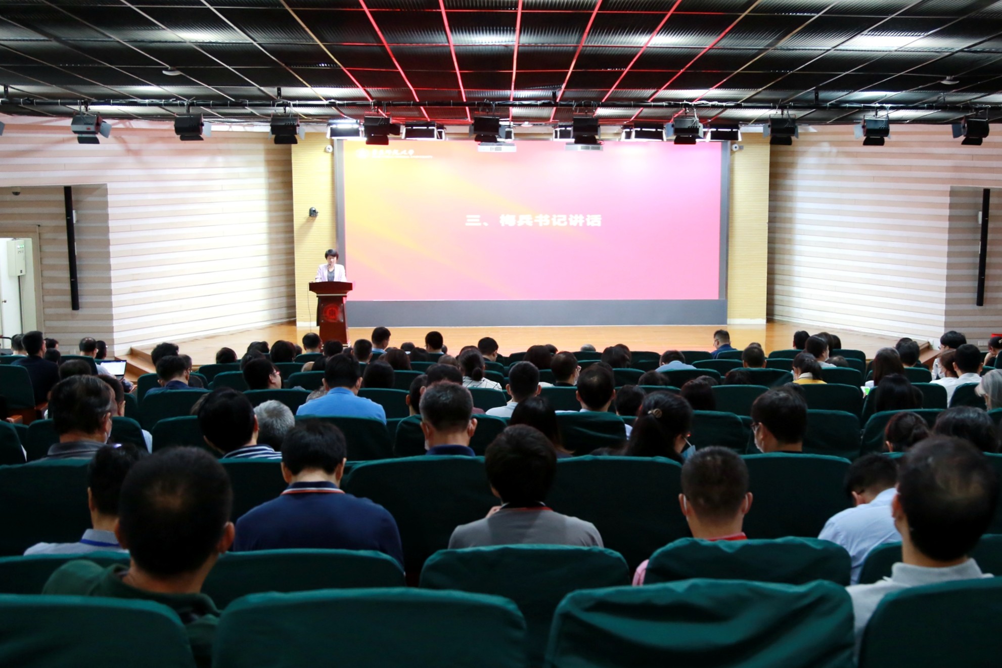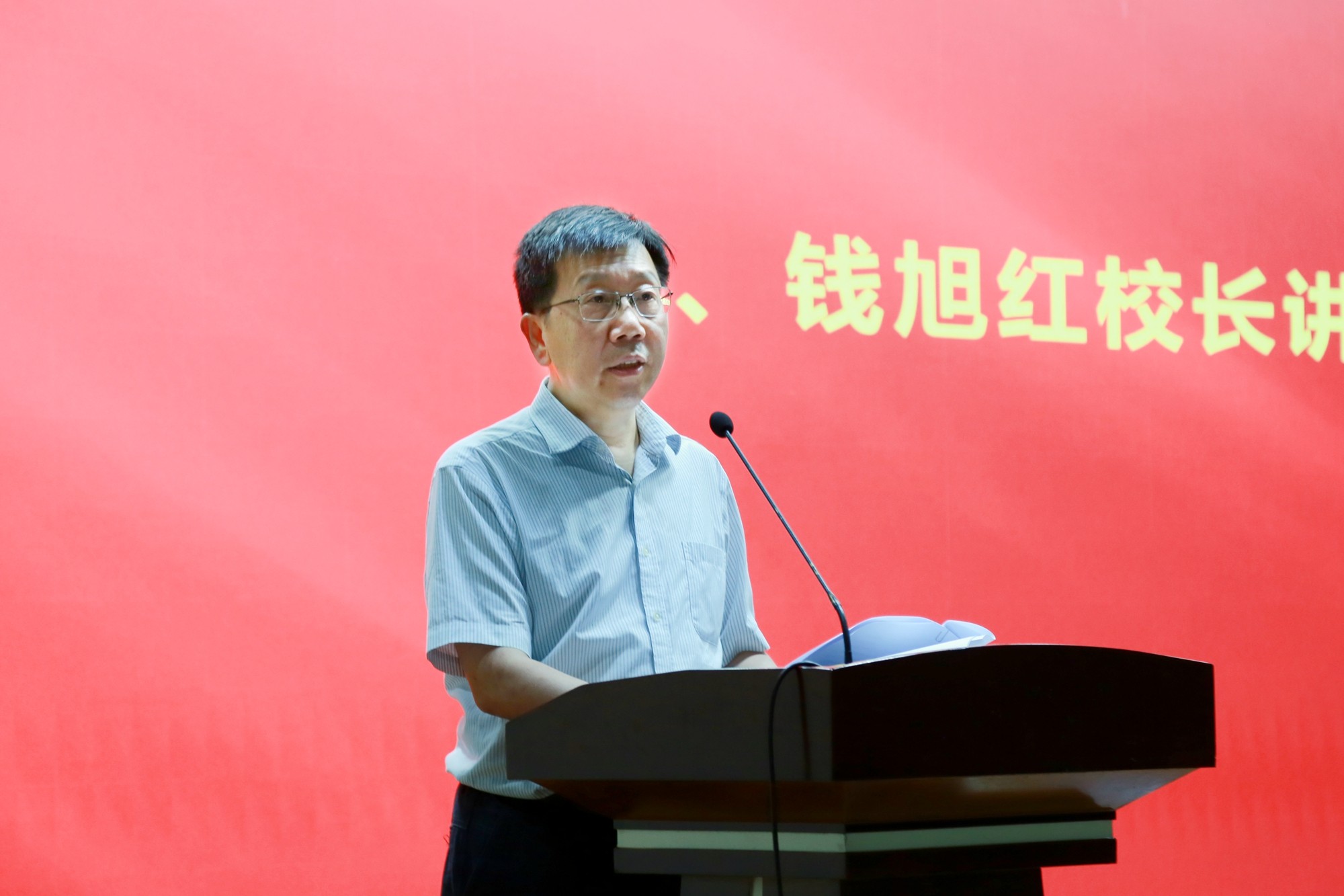 会议由校党委副书记朱民主持。校领导杨昌利、曹友谊、周傲英、戴立益、雷启立,校学术委员会及各专门委员会委员,全体中层干部,各教工党支部书记,各部门工会主席,教师代表,专职组织员,全体辅导员,离退休教职工党员代表以及学生代表等出席会议。