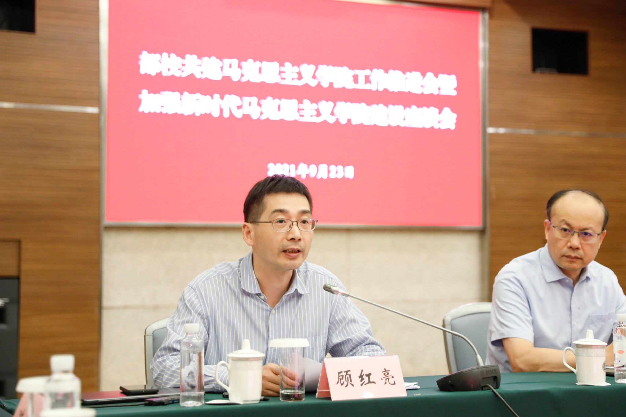 市委宣传部副部长徐炯主持会议并讲话,充分肯定了一年来部校共建工作取得的新进展,强调要全面贯彻落实中央关于马克思主义学院建设的最新要求,推动马克思主义理论研究宣传走深走实,加快马克思主义理论学科特色化高水平发展,提升思想政治理论课立德树人关键课程作用,推进马克思主义理论师资队伍建设,强化马克思主义理论专业人才培养,推动全市马克思主义学院建设迈上新台阶。部校共建马克思主义学院在贯彻落实中央文件精神上要走在前列,为全市马克思主义学院作好表率、提供借鉴。