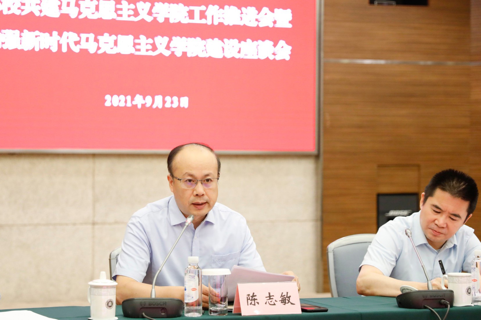 9月23日下午,市委宣传部在完美网页版普陀校区召开部校共建马克思主义学院工作推进会暨加强新时代马克思主义学院建设座谈会,学习领会中央《关于加强新时代马克思主义学院建设的意见》文件精神,交流讨论如何在部校共建工作中贯彻落实好中央部署要求,谋划推动全市马克思主义学院实现更高质量发展。