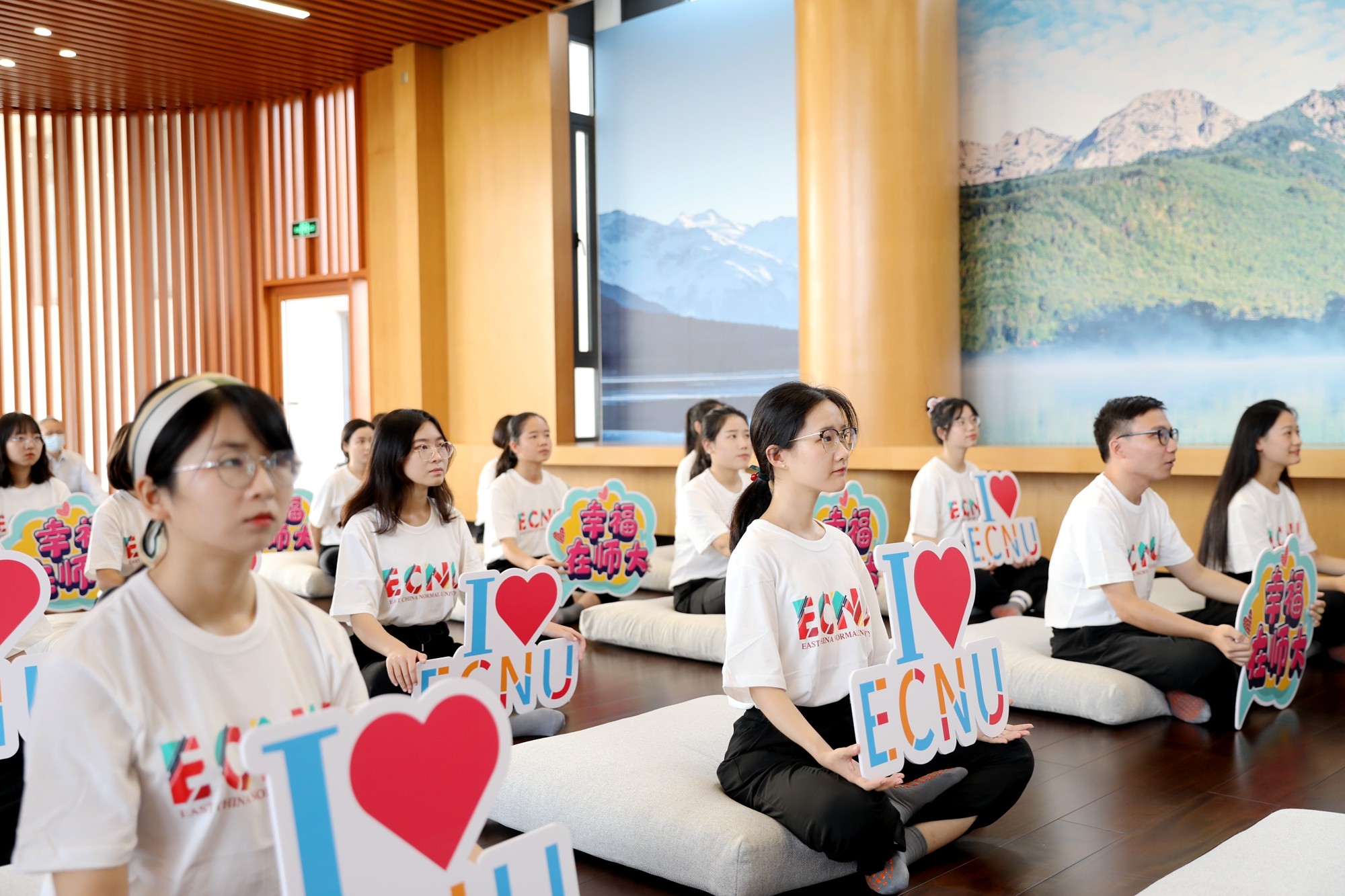 当天启动仪式后,心理健康教育与咨询中心副主任吴冉带领现场师生参与幸福减压工作坊。她向同学们传授通过“在当下时刻,不带评判地对环境和自我保持有意识的觉察”来调节身心,并伴着柔和的音乐和减压指导语,带领同学们现场体验减压训练,感受身心自然、宁静的状态。