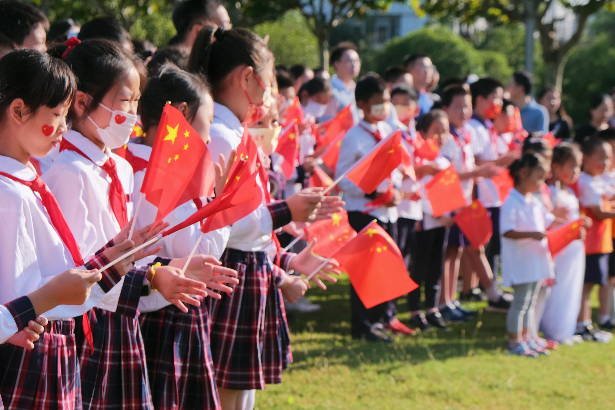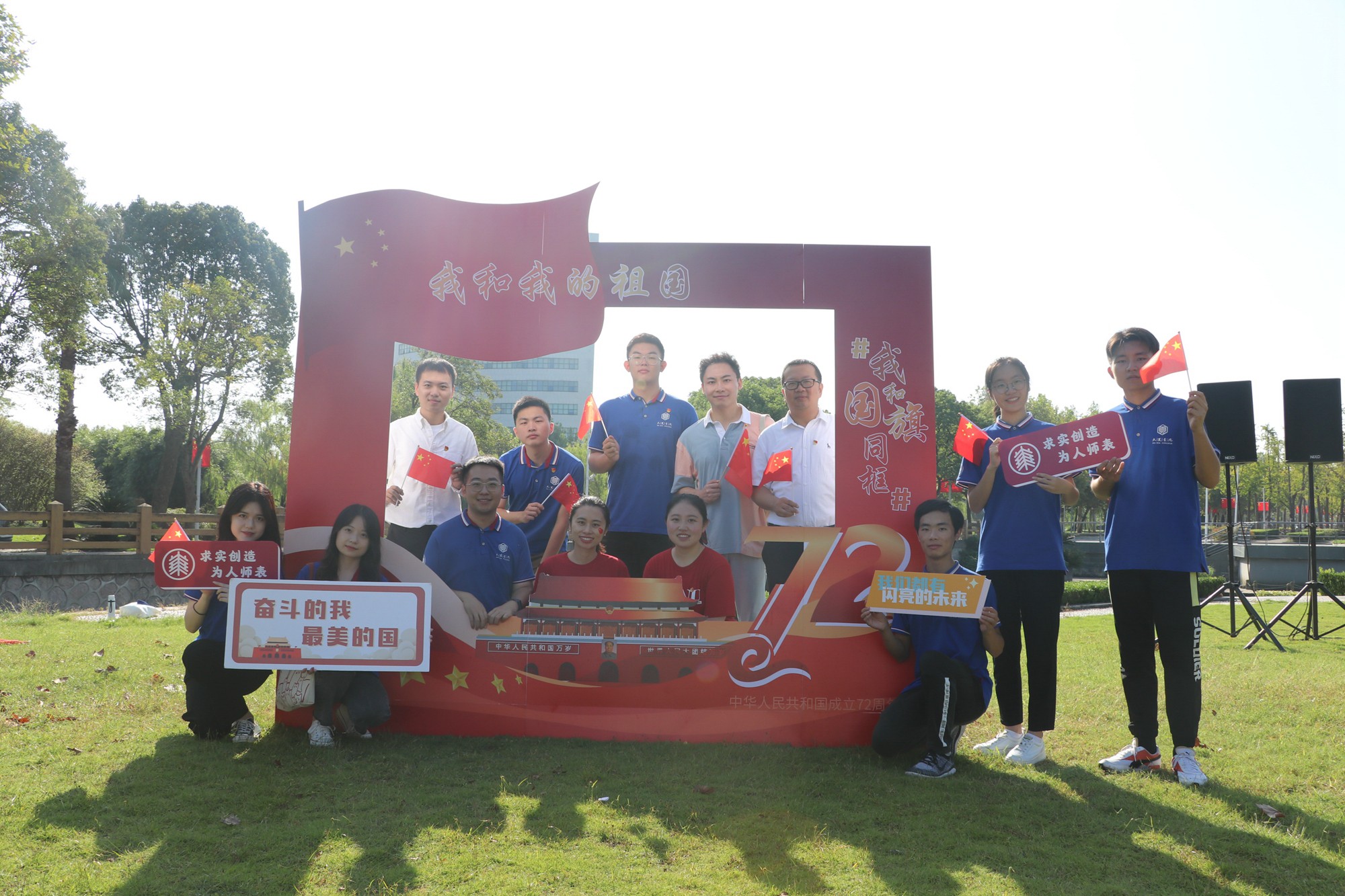 升旗仪式现场,学校还策划推出“我和国旗同框”打卡活动,吸引全校师生与国旗同框合影,为共和国生日、母校七秩华诞送上美好祝福。