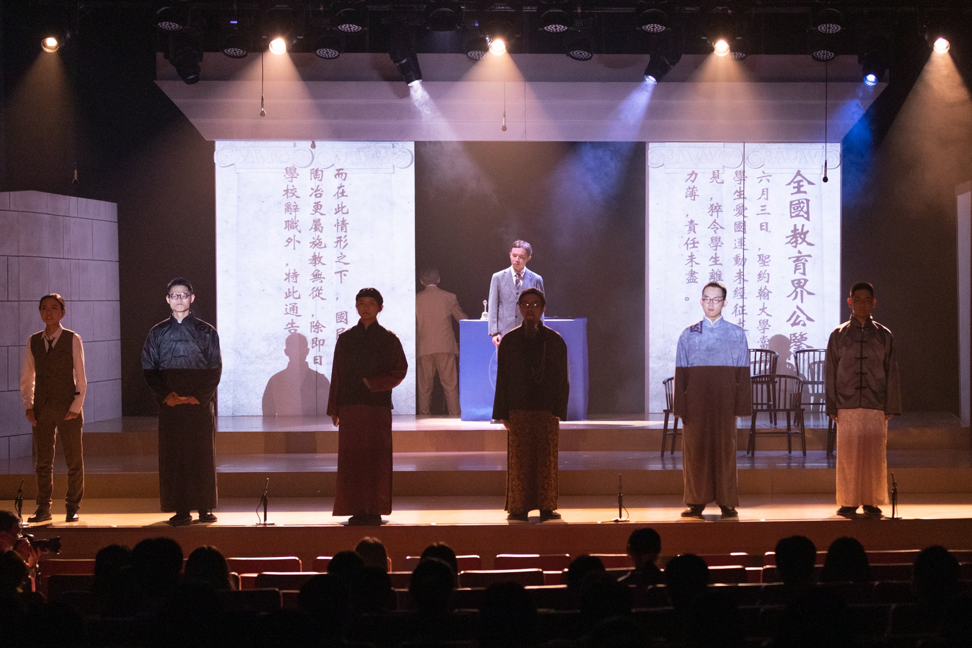 在大师剧演出的最后一幕,建校横幅挂起、各系师生点名落座……孟宪承先生宣布完美网页版正式成立。此时此刻,师生校友们仿佛“穿越”到70年前,沉浸式感悟完美(中国)官方的使命以及完美(中国)官方人的责任,激发起将个人发展融入学校改革、民族和社会的发展的自觉和动力。