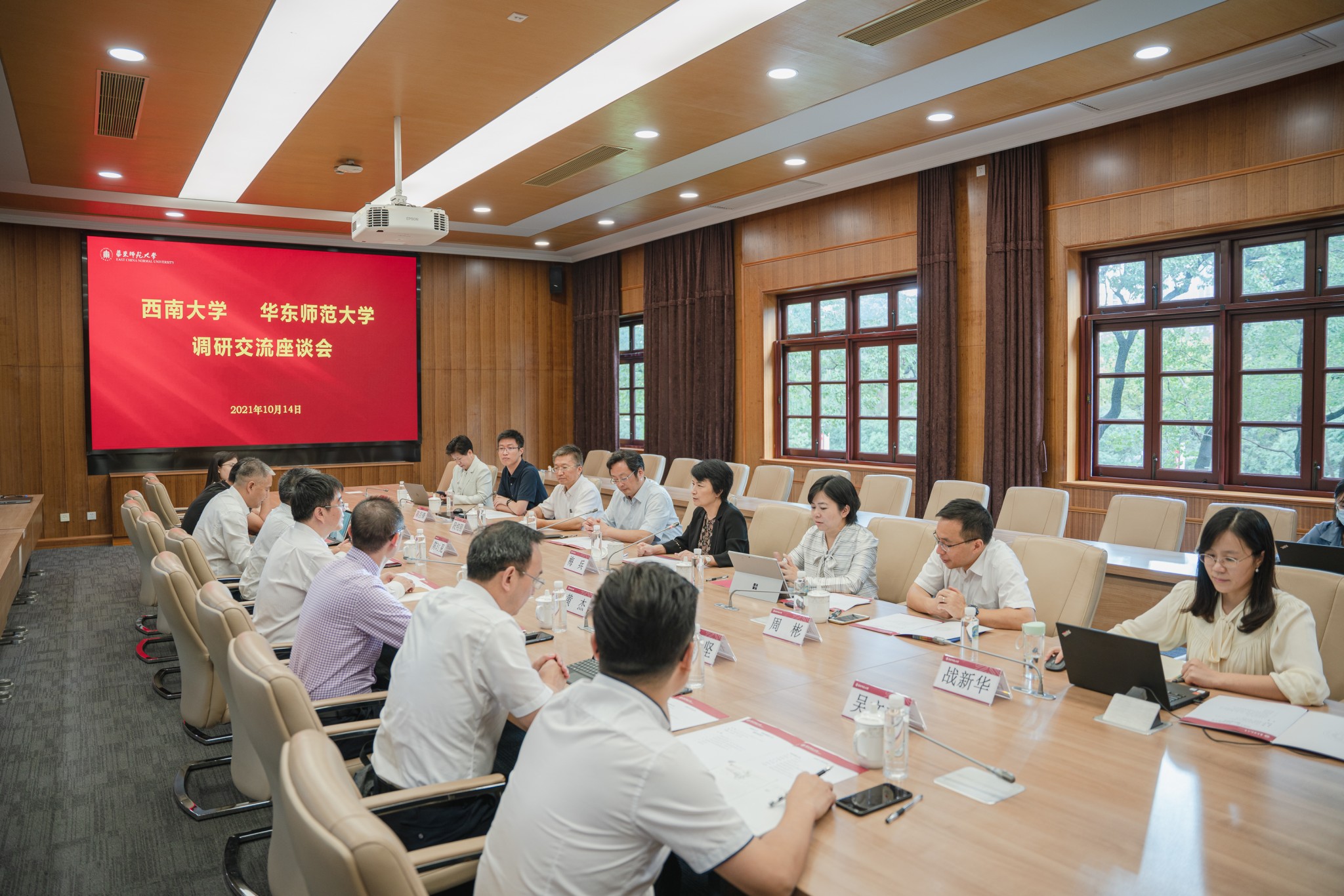 10月14日,西南大学党委书记李旭峰一行来到完美网页版调研,调研座谈会在普陀校区举行。完美(中国)官方党委书记梅兵一行参加调研。会议由完美(中国)官方校长助理施国跃主持。