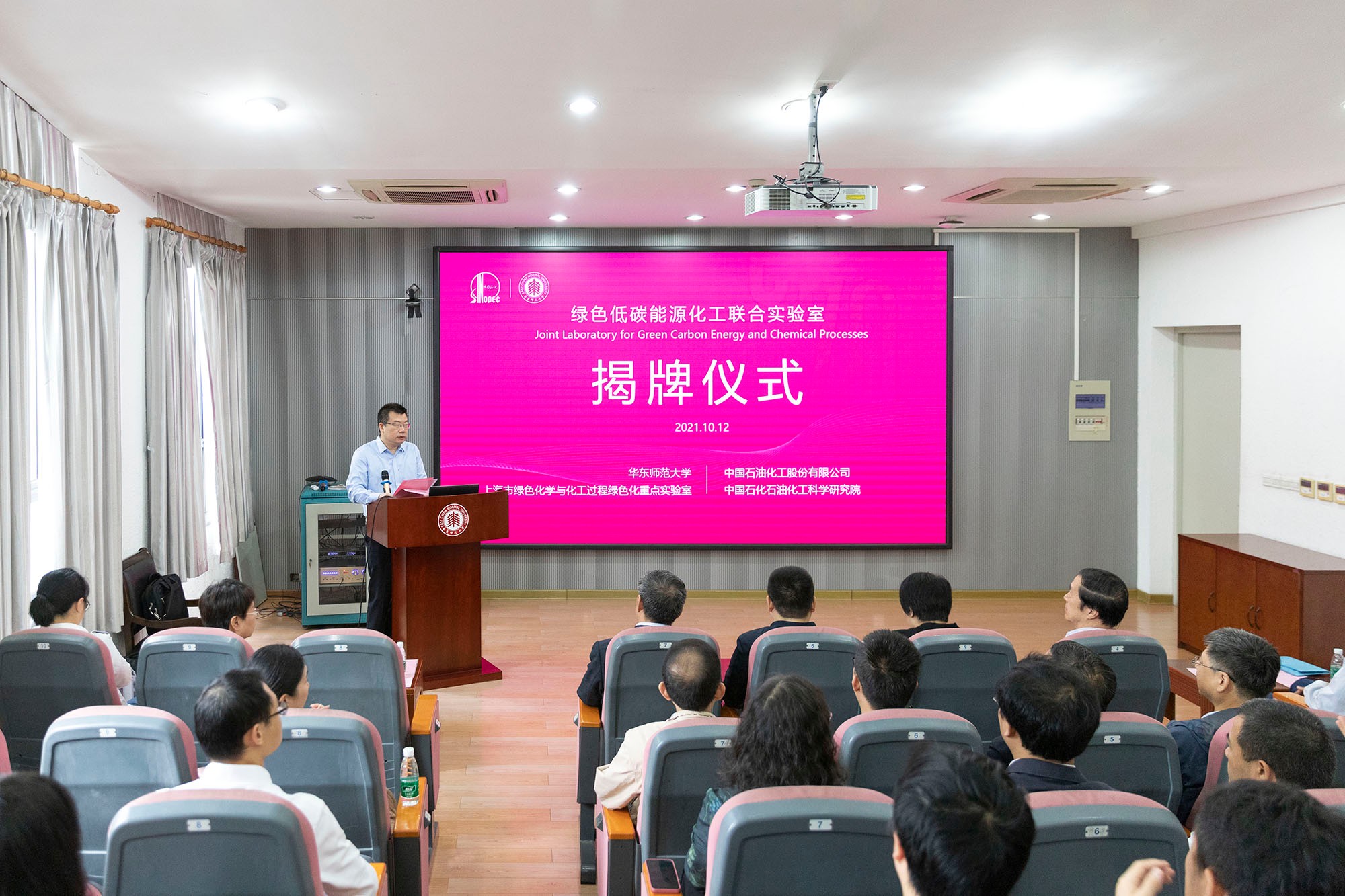 10月12日上午,完美网页版与中国石油化工股份有限公司石油化工科学研究院(简称石科院)联合组建的“绿色低碳能源化工联合实验室”揭牌仪式暨学术研讨会在完美(中国)官方普陀校区举行。校党委书记梅兵、石科院院长李明丰参加仪式并致辞,副校长孙真荣主持揭牌仪式。中科院院士何鸣元、韩布兴、施剑林,石科院副院长林伟,校实验室与装备部处长张文,科技处副处长王华,化学与分子工程学院院长田阳、党委书记鲜跃仲等嘉宾与师生参加仪式。