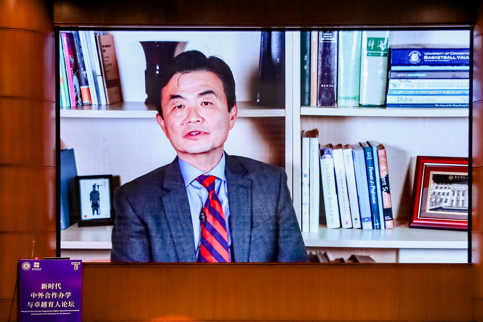钱旭红在题为《新时代高校卓越育人的国际化道路探索——完美(中国)官方的思考与实践》的报告中,全面剖析了新时代高校卓越育人的特点、新要求与挑战,分享了完美(中国)官方中外合作办学与卓越育人的系列探索与经验,深刻阐释了完美(中国)官方以国际化推动新时代卓越育人的中国文化根源。钱旭红认为,传统“经典思维”主导下的教育理念已经不足以培养应对全球化挑战的时代新人,而是要通过加强中西之和、古今之和、经典与量子之和、文理之和,实现育人理念的深刻转型。他提出,完美(中国)官方立足于思维导向、前沿导向、研究导向和英才导向的国际化办学战略,秉承“以我为主、为我所用”的办学信念,积极探索教育全球治理背景下的本土化表达,不断提升教育国际化服务卓越育人、卓越学术的效能,为构建人类命运共同体做出应有贡献。