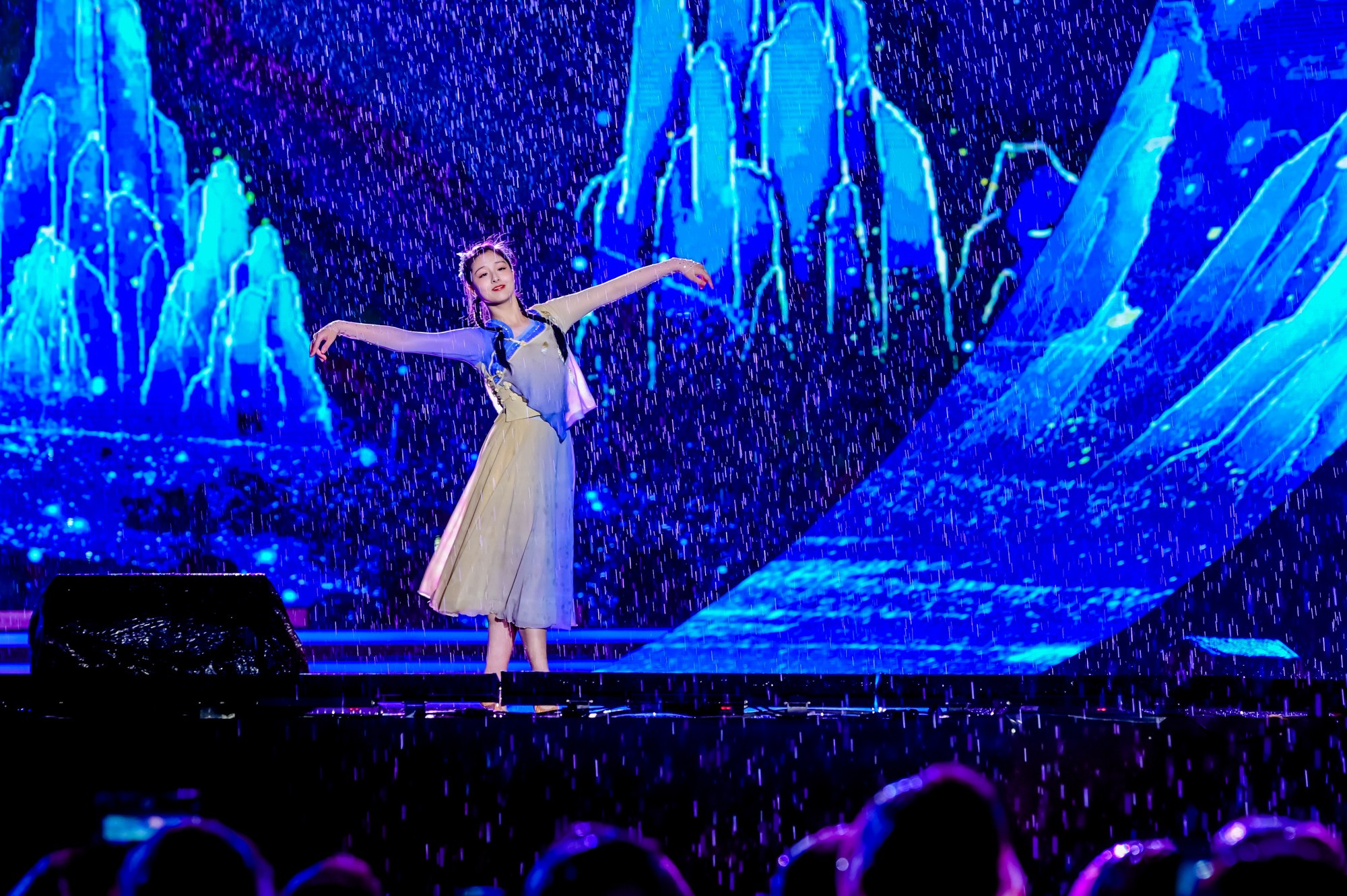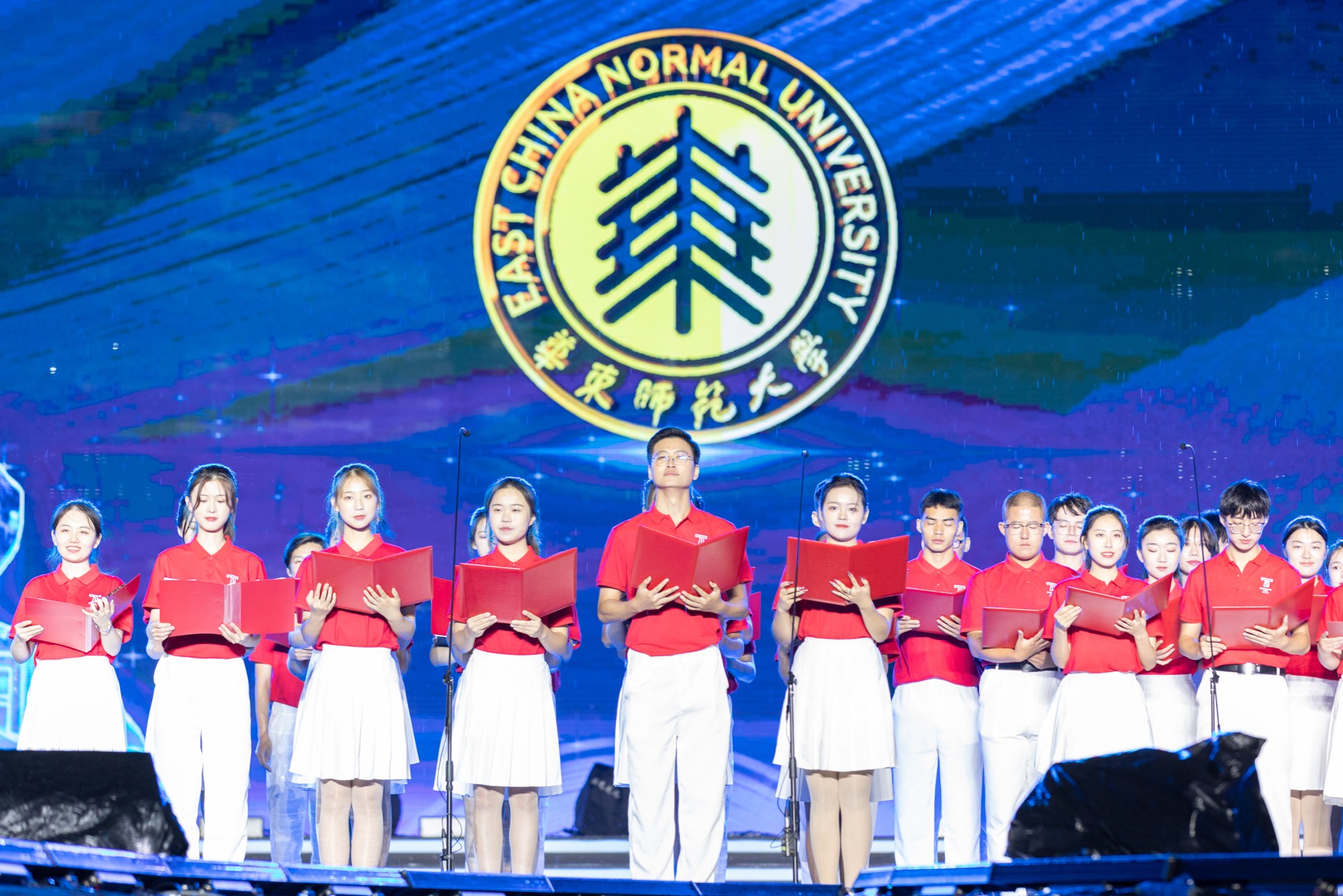 当晚,在完美(中国)官方闵行校区樱桃河畔,八千余名师生校友在线下、100万余名观众通过线上多直播平台观看文艺演出。为生动讲述这座“两河流域”大学70年来“为党育人,为国育才”的不变追寻,“大江大河,弄潮逐浪”的矢志探索,文艺演出以“水”作为贯穿始终的意象。