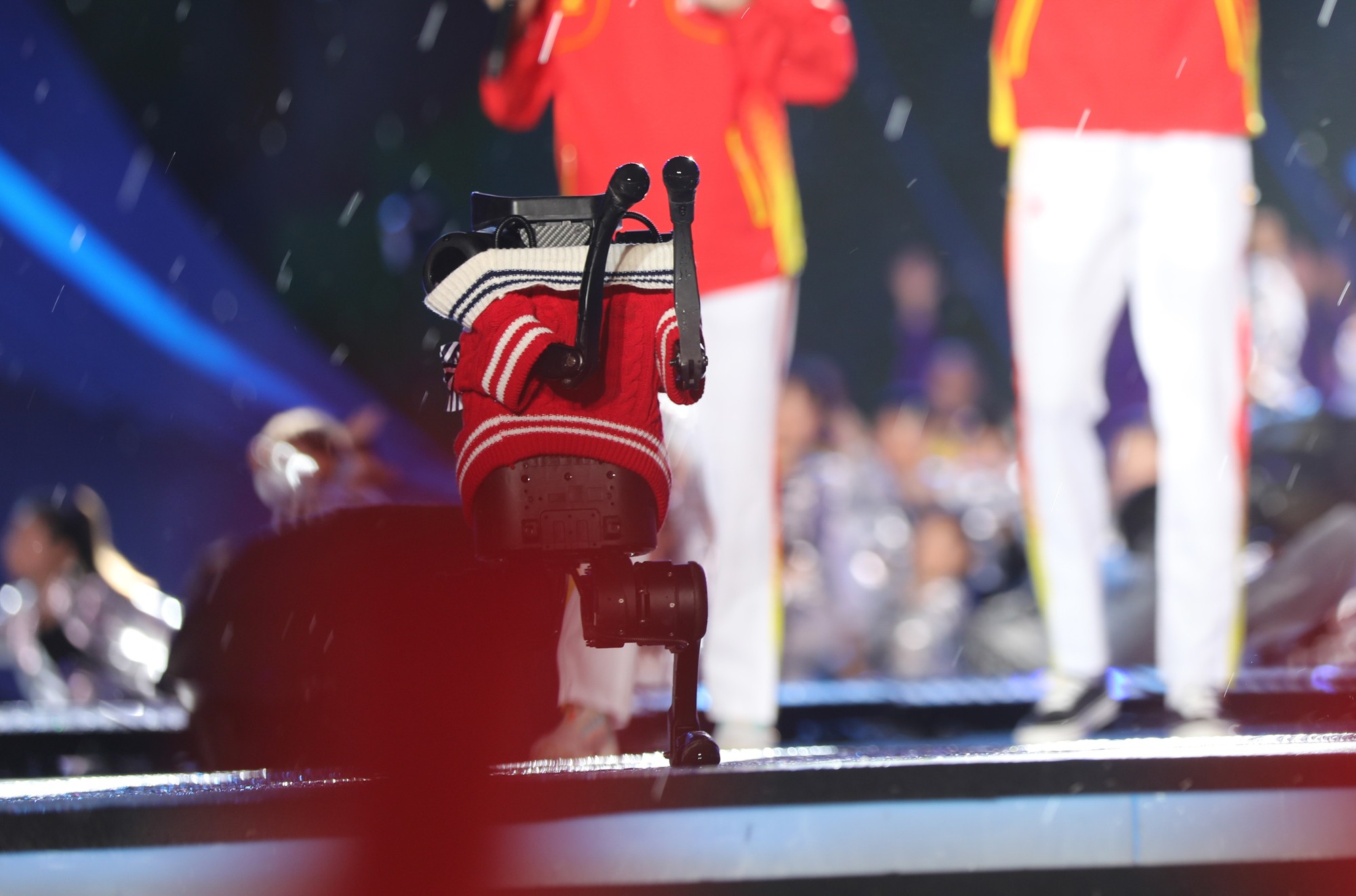 值得一提的是,节目中还有两位特殊的表演者——智能机器狗,操控者是物理与电子科学学院本科生与通信与电子工程学院研究生团队。团队成员孙一辰表示:“第一次以这种方式参与到校庆演出很激动也很惊喜,这一次的经历也鼓舞着我向科研的方向继续前进。”