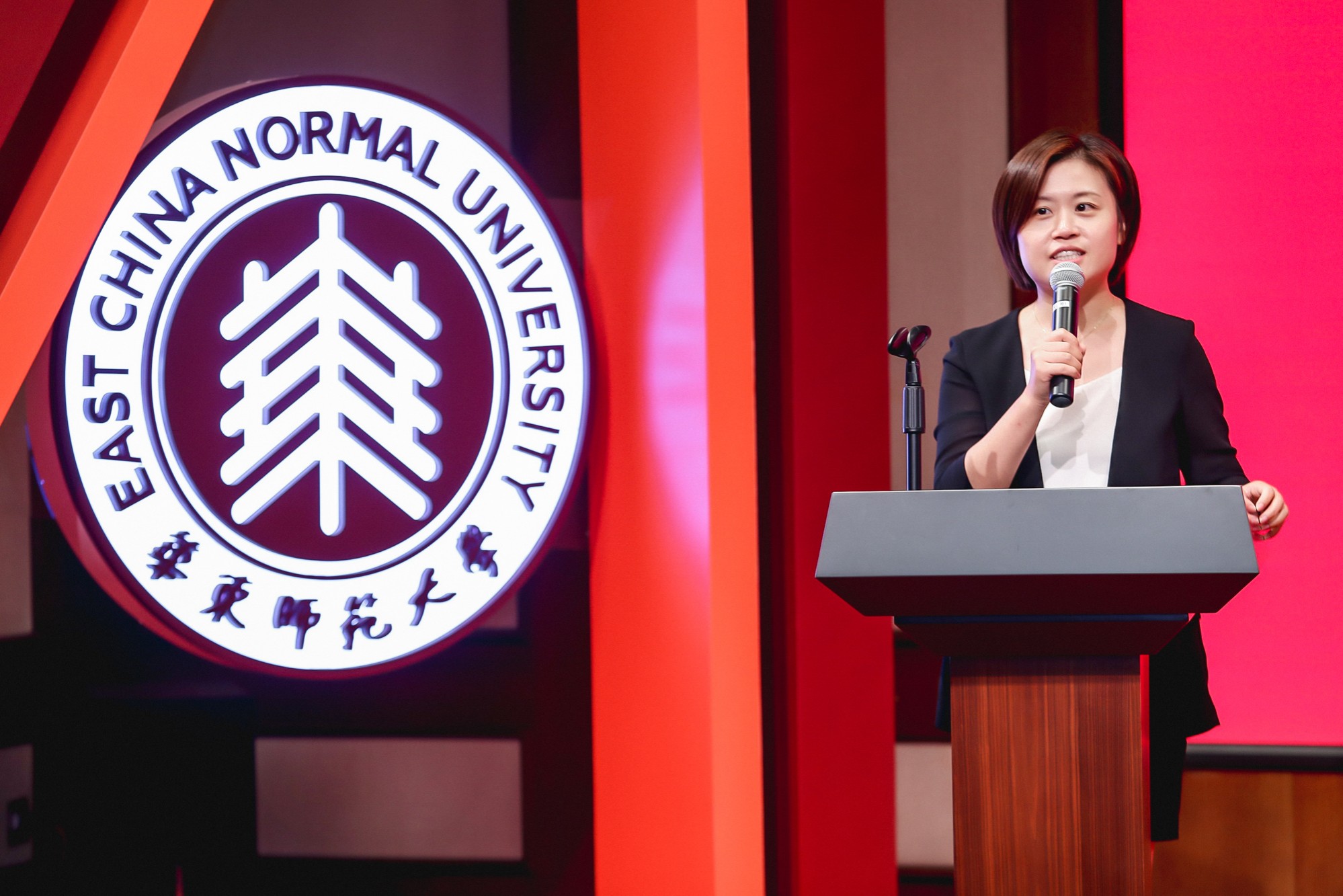 历届“十佳女大学生”代表们也纷纷上台发言,与在场的学姐学妹们一同重温师大记忆,共叙同窗情谊,并表达了对师大70华诞的祝福。1991年第一届十佳女大学生、广东外语外贸大学留学生教育学院院长蔡红说道,这么多年来,“十佳女大学生”称号赋予她“佳人”的意义,那就是追求真、善、美、爱,无论走多远,都不忘初心;无论多迷茫困顿,都用温柔的力量坚持内心的骄傲。作为1994年和1998年两届“十佳女大学生”,我校体育与健康学院汪晓赞教授也在活动中讲述了自己在丽娃河畔求学、工作和科研历程,她引用《诗经》“所谓伊人,在水一方”的诗句,指出丽娃河畔的“伊人”们,自信、坚定、温柔,展现了女大学生最美好的模样。她还提到在师大与体育结缘的故事,幽默风趣的语言让全场响起阵阵欢笑。2005年“十佳女大学生”、上海市徐汇区发展改革委员会何婷婷提起母校给予的三样最珍贵的东西:经历、思维方式和自我认知,“求实创造,为人师表”的校训引领着大家在各自的人生轨道上闪耀光芒。2012年“十佳女大学生”、上海房地产经营(集团)有限公司的闻贇也同样提及“十佳女大学生”们具有的聪慧、善良、自信的美好精神品质,激励着她在工作岗位上不断努力,不断突破,遇见更好的自己。