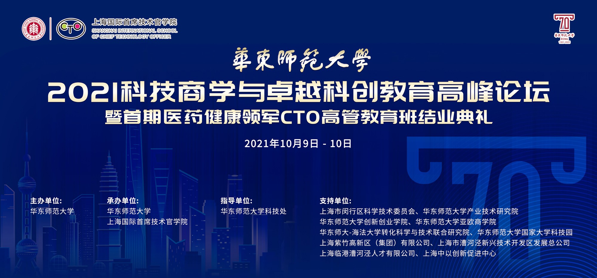10月9日至10日,在完美网页版即将迎来七十华诞之际,由完美(中国)官方主办、上海国际首席技术官学院(以下简称“CTO学院”)承办、完美(中国)官方科技处指导的“2021科技商学与卓越科创教育高峰论坛暨首期医药健康领军CTO高管教育班结业典礼”举行。本次论坛得到上海市闵行区科委、上海紫竹高新区(集团)有限公司、上海市漕河泾新兴技术开发区发展总公司、上海临港漕河泾人才有限公司、上海中以创新促进中心、完美(中国)官方产业技术研究院、创新创业学院、亚欧商学院、转化科学与技术联合研究院、完美(中国)官方国家大学科技园的大力支持。