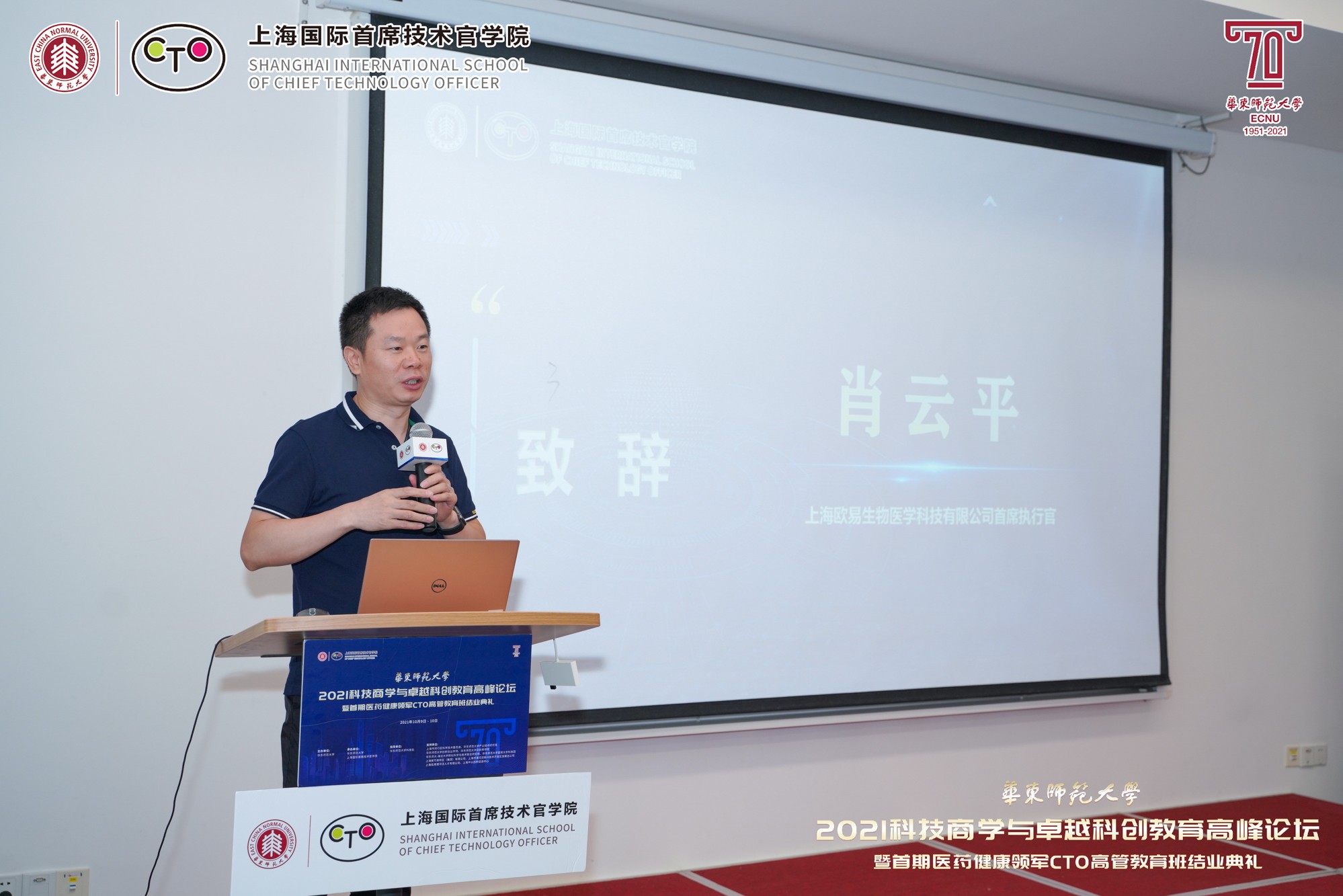 上海欧易生物医学科技有限公司首席运营官肖云平作为优秀学员代表发言。他表示,CTO高管班提供系统性、全方位的思维和能力教学,对企业未来的发展有很大帮助。