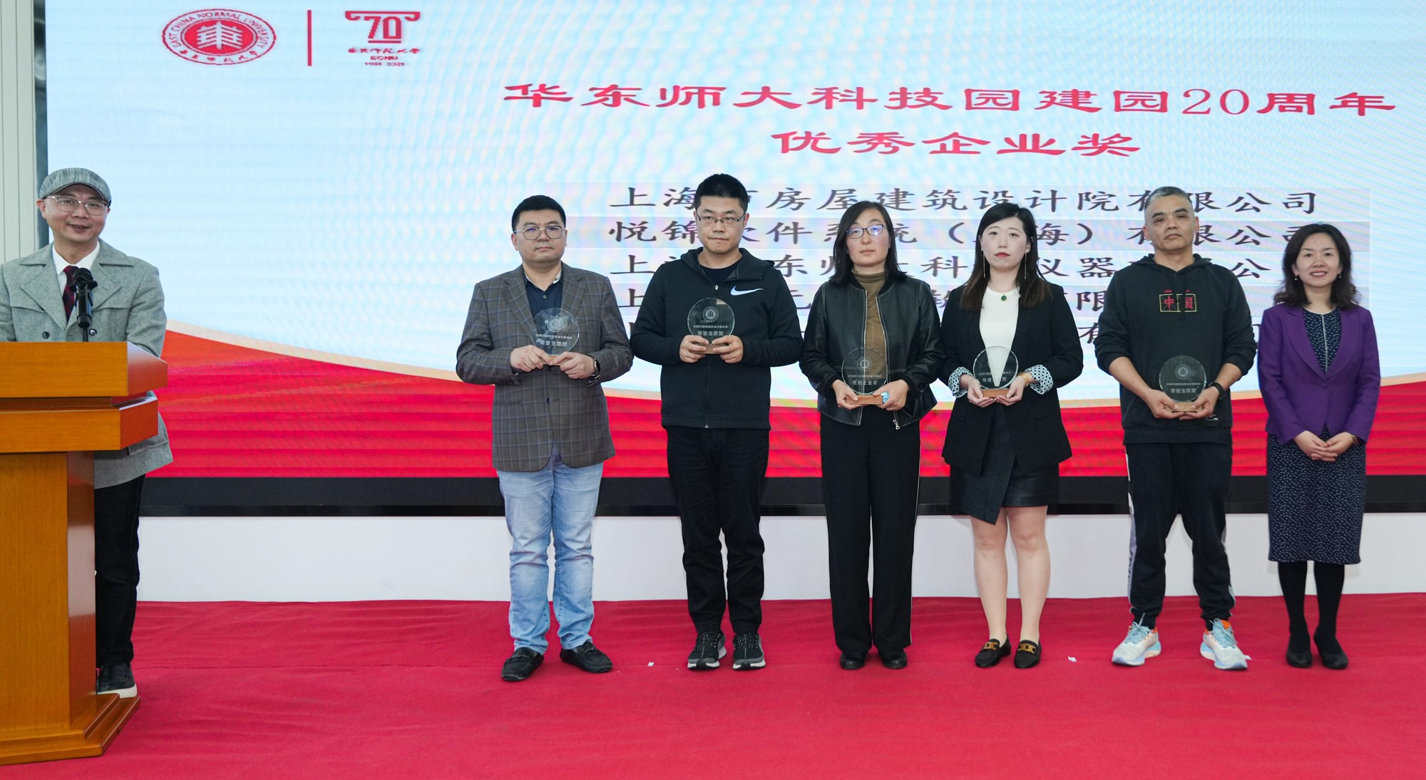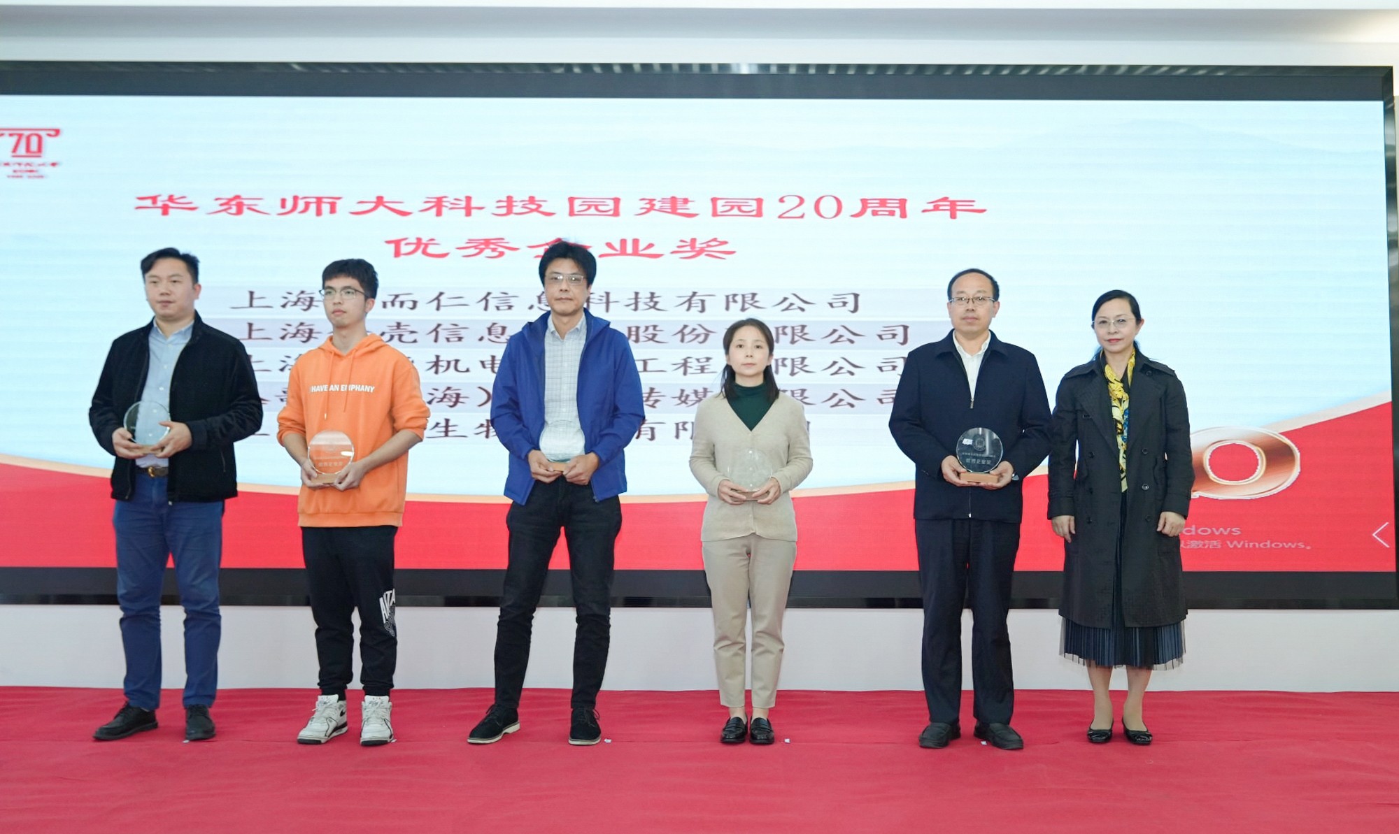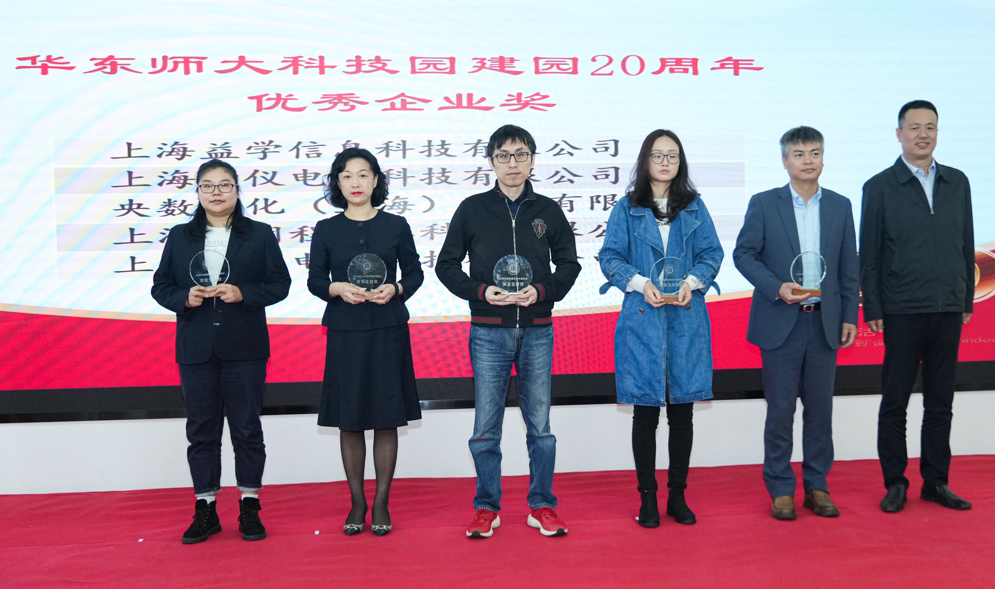 为树立典型、表达敬意,庆祝活动对园区建设做出突出贡献的企业和个人予以表彰,依次颁发了“完美(中国)官方科技园建园20周年优秀企业奖”“完美(中国)官方科技园教授工作室卓越贡献奖”等。上海市房屋建筑设计院有限公司、悦锦软件系统(上海)有限公司、上海完美(中国)官方科教仪器有限公司、上海华元创信软件有限公司、上海思来氏信息咨询有限公司等20家企业荣获“完美(中国)官方科技园建园20周年优秀企业奖”,普陀区投促办主任黄胜利、长征镇党委书记王春明、长征镇镇长潘轶、普陀区就业促进中心主任许鸿蕨为获奖企业颁奖。