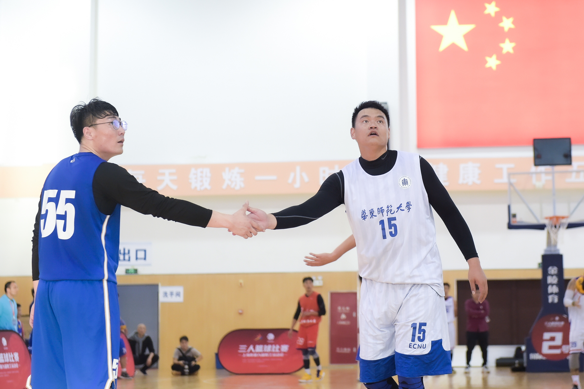 八强赛转战到了天雄路赛区,我校遇到了实力较强的上海中医药大学队,对方球队由前交大CUBA明星球员肖博领衔。我校根据对手情况作了诸多的讨论和分析,派出孙柳青、朱毅、罗宗才首发,蒋逸忞替补。比赛强度随着赛事推进愈加激烈,我队孙柳青对肖博进行了重点盯防,同时充分发挥内外线结合的优势,最终以19:13赢得比赛,杀入四强。