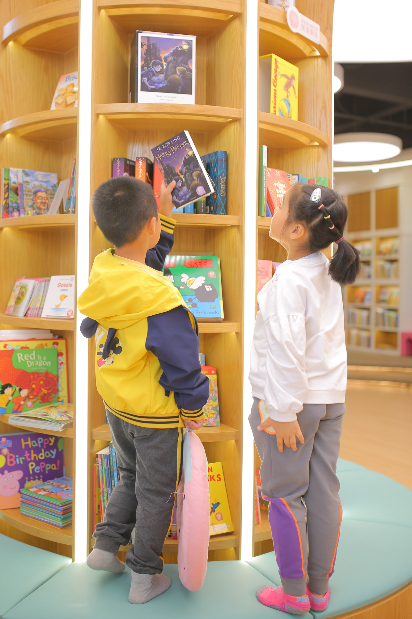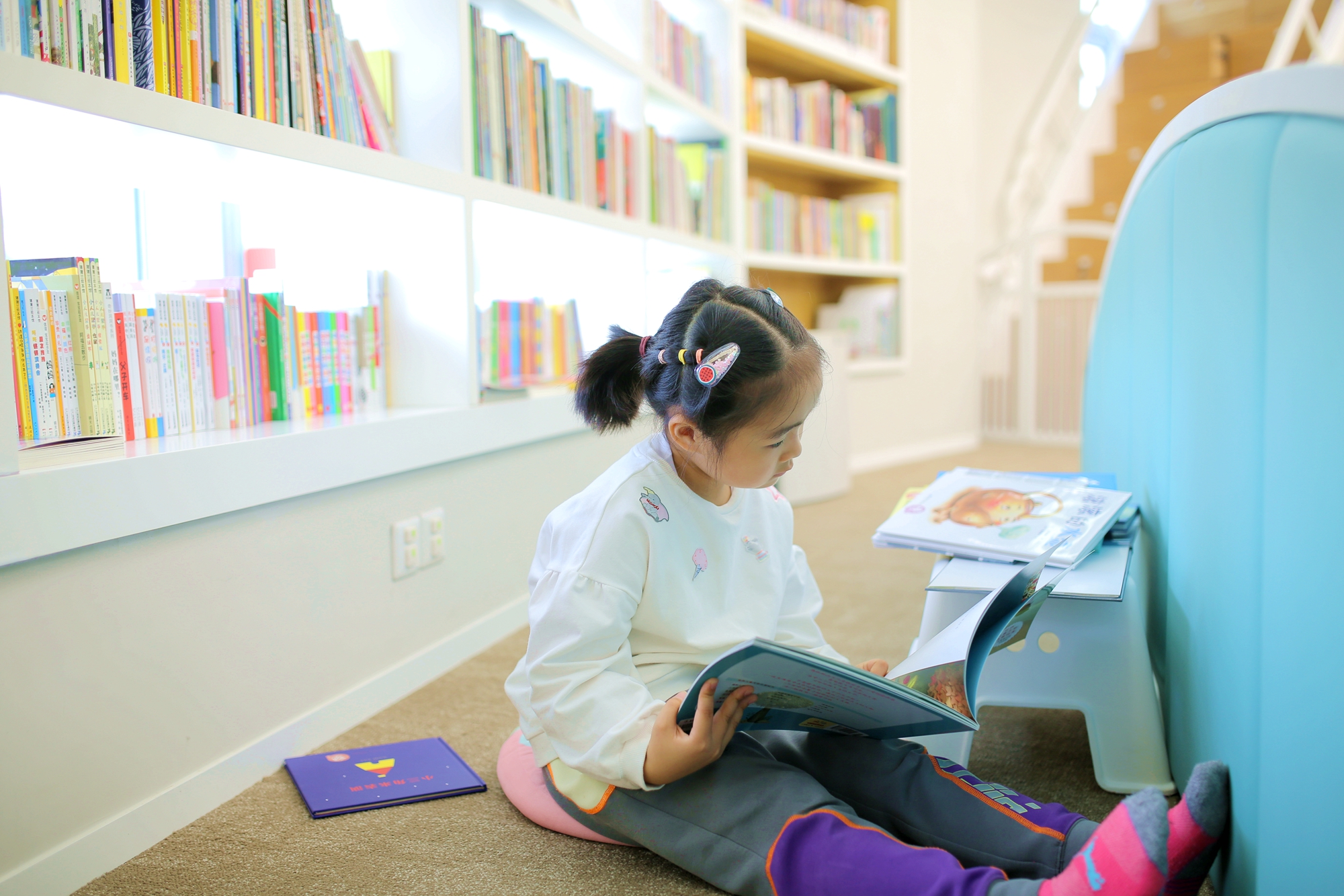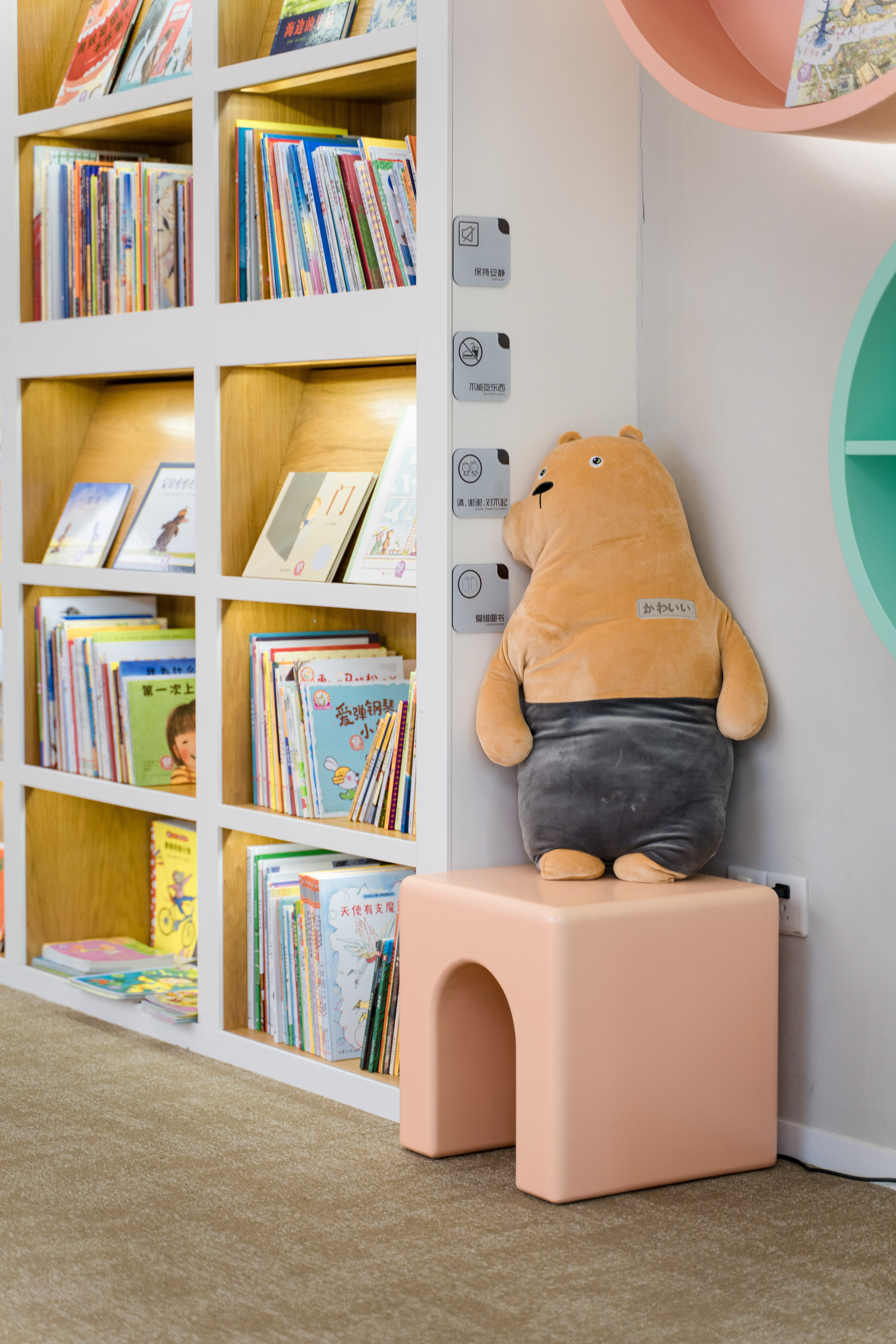 馆内配有恒温空调、地暖调节、室内温度色彩温馨的儿童座椅和休闲软垫,大人和孩子都可在此放松身心亲近书籍。孩子们也可以在店员的帮助下,独立进入馆内阅读体验阅读的乐趣!