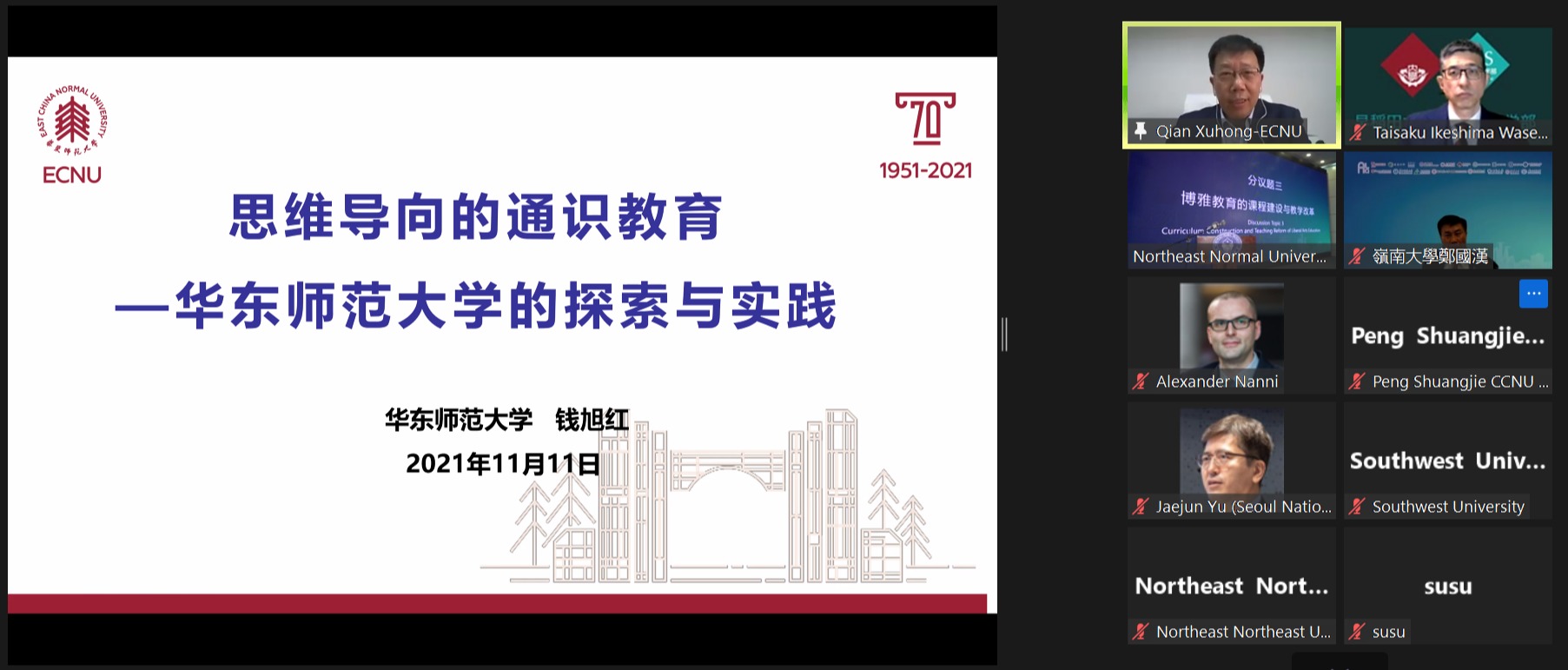 校长钱旭红院士在2021年亚洲博雅大学联盟校长论坛上发言