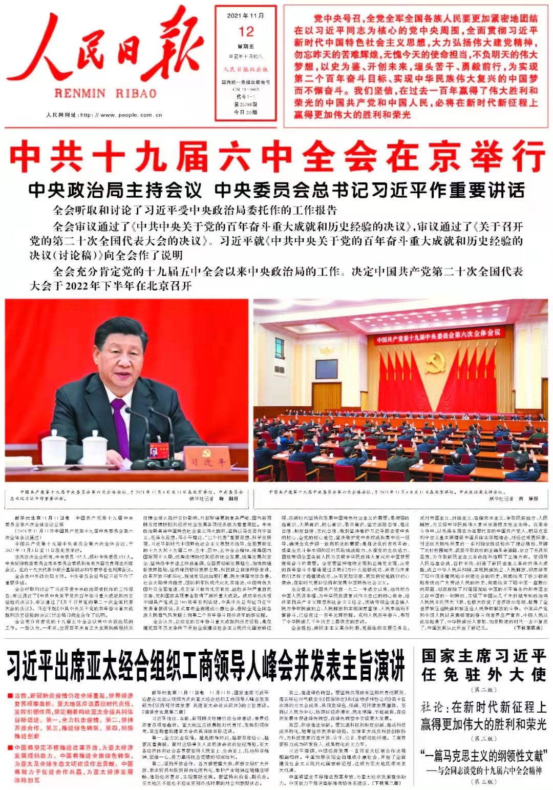 在中国共产党百年华诞之际召开的党的十九届六中全会意义十分重大。全会总结了中国共产党百年奋斗的重大成就,令人深感是全面系统、实事求是的,对十八大以来尤其是对十九届五中全会召开一年来的回顾总结,因我们都身临其境,所以也特别让人感慨和振奋;在此基础上全会总结了中国共产党百年奋斗的历史经验,独到精辟,可以说这十个“坚持”就是我们党领导中国人民赢得革命、建设和改革的十大“法宝”,坚持用好这十大“法宝”,我们也必将赢得建设社会主义现代化国家的胜利。