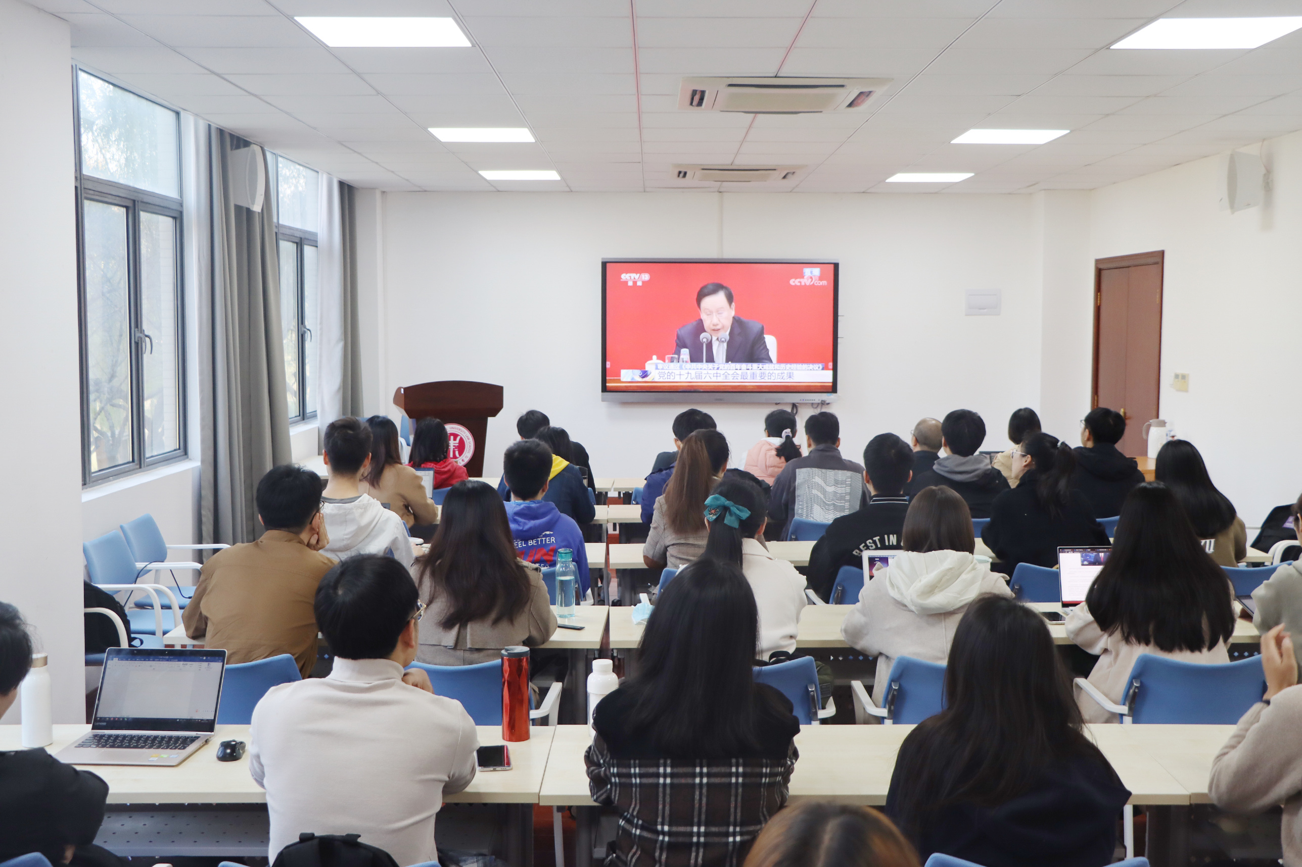 师生集体收看 第一时间认真学习党的十九届六中全会精神
