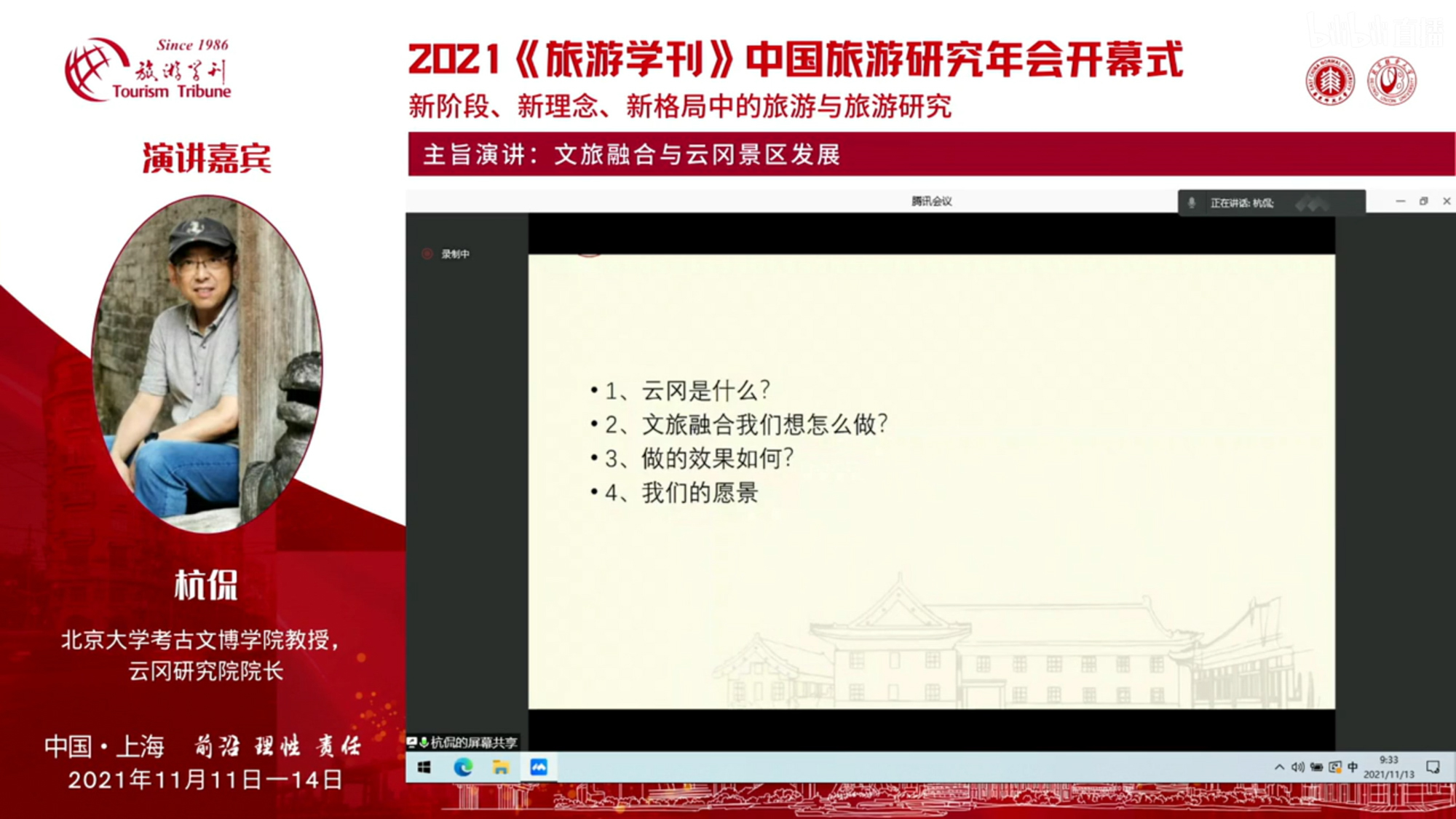由完美网页版和北京联合大学主办,完美网页版经济与管理学部、北京联合大学旅游学院和《旅游学刊》编辑部承办,上海市文化和旅游局指导,绿地旅游研究院协办的“2021《旅游学刊》中国旅游研究年会”于11月13日在上海开幕。本届年会首次采用线上线下同步举办,三万余名旅游学界和业界人士齐聚云端参加此次学术盛会。会议以“新阶段、新理念、新格局中的旅游与旅游研究”为主题,讨论新时代背景下旅游研究的前沿理论与我国旅游产业实践的焦点问题,以期促成具有引领性的中国旅游研究成果,探索面向未来的中国旅游产业与旅游学科发展之路,凝聚旅游学人之力,服务国家和社会的发展。