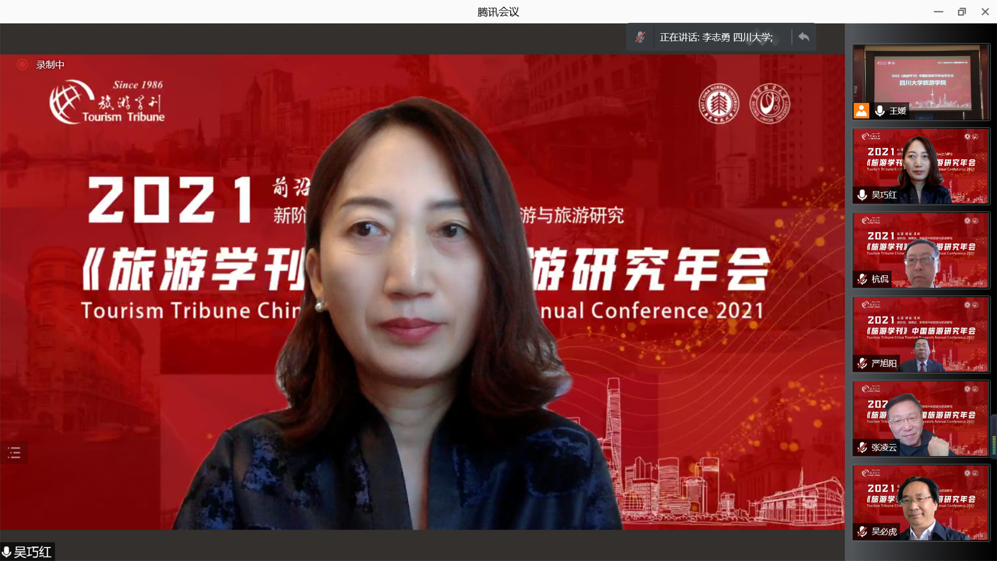 最后,编辑部吴巧红主任宣布2022《旅游学刊》中国旅游研究年会承办方为四川大学旅游学院。四川大学旅游学院副院长李志勇教授首先感谢《旅游学刊》的信任。他表示四川大学旅游学院将配合《旅游学刊》编辑部,做好东道主,努力办好2022年中国旅游研究年,欢迎并期待各位旅游学人2022年相聚成都。吴巧红对本届年会承办方完美网页版经济与管理学部的师生表示衷心感谢,本届年会克服了种种不利因素,最终采用线上线下同步的方式举办,也是中国旅游研究年会的一次全新尝试。