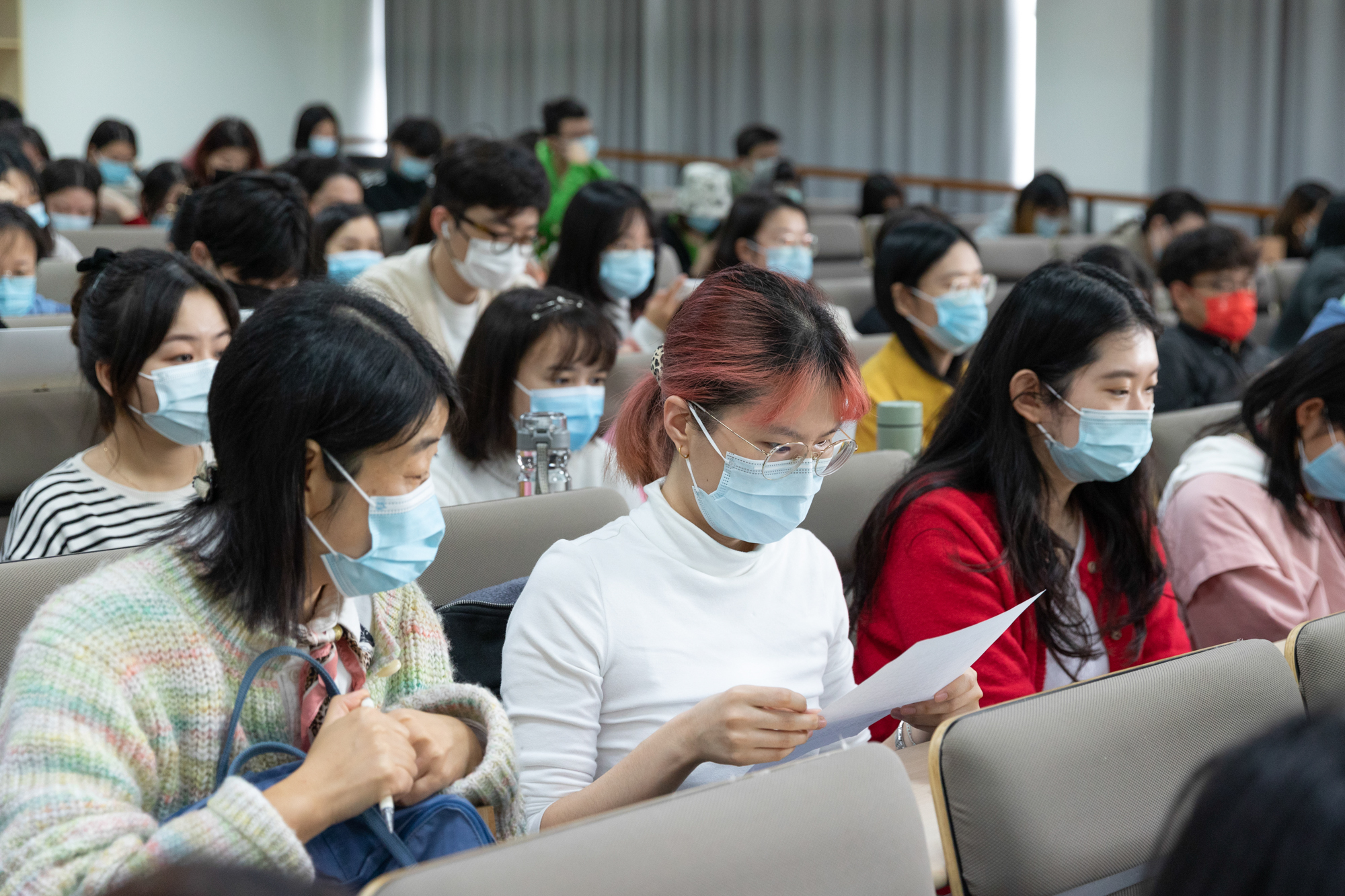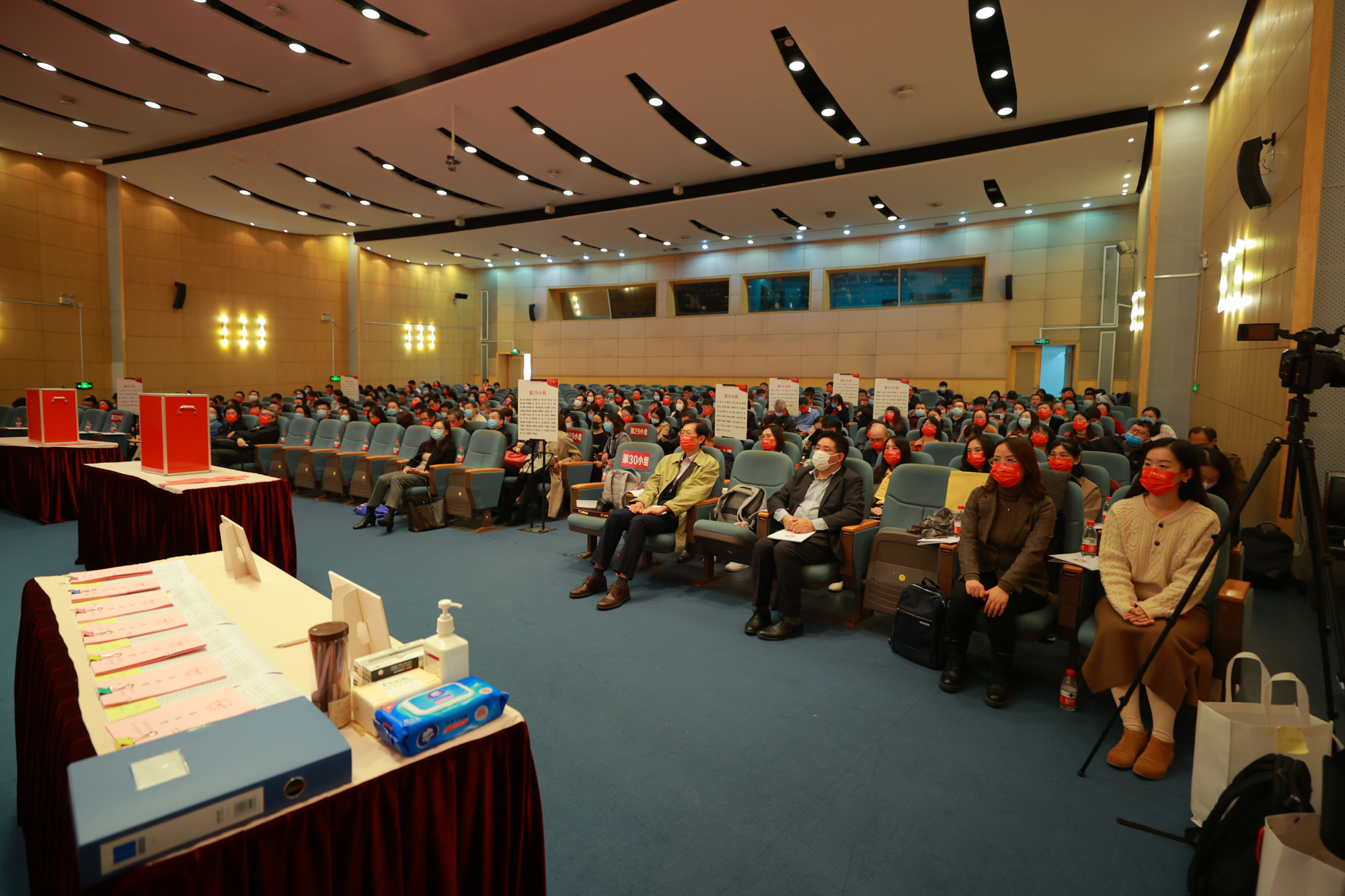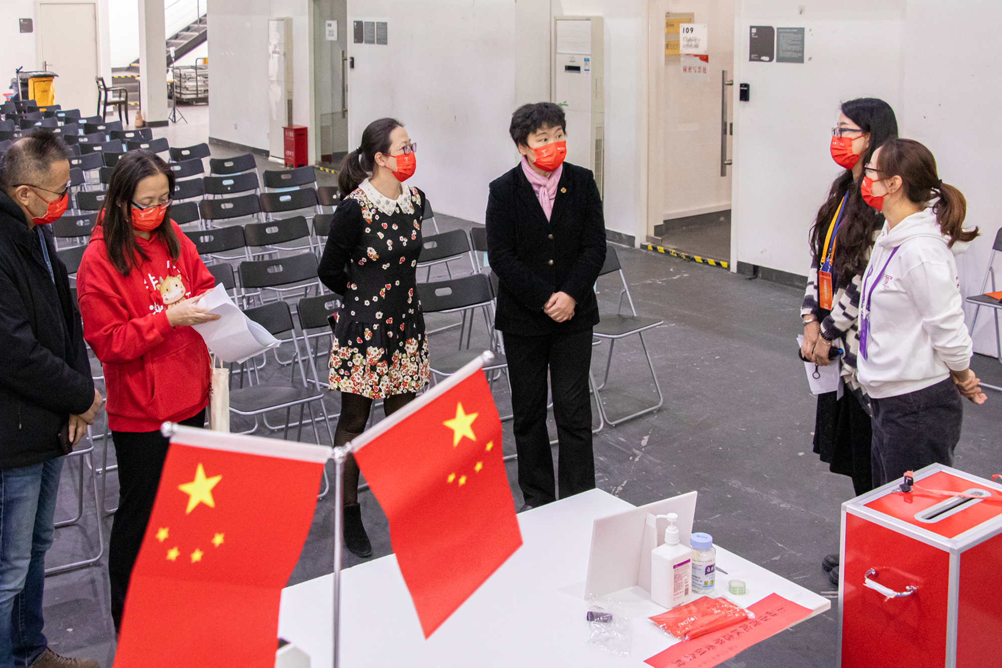 根据选举投票站的分布,学校选举工作组在两个校区设了多个体温复测点,按事先的演练待命,随时准备处置突发情况。各个投票站工作人员佩戴N95口罩,在现场充分做好防疫工作、配备相关防疫物资,按规定人数分时段安排选民有序入场,保障选举工作的顺利进行。会前,800多名工作人员进行了全员核酸检测。