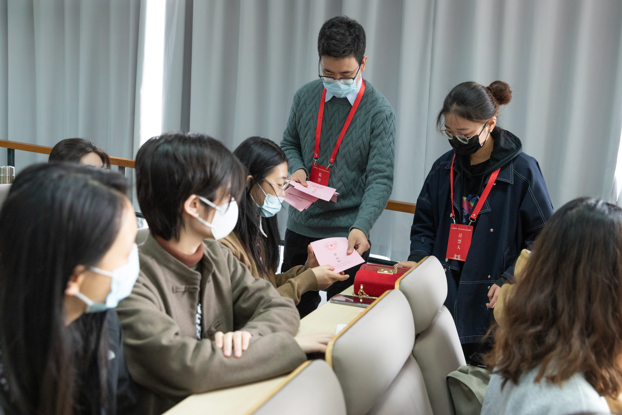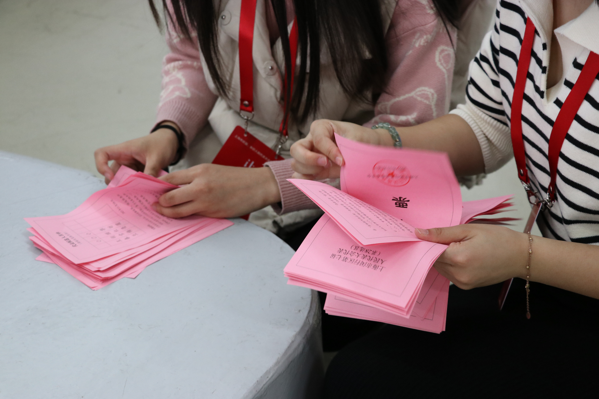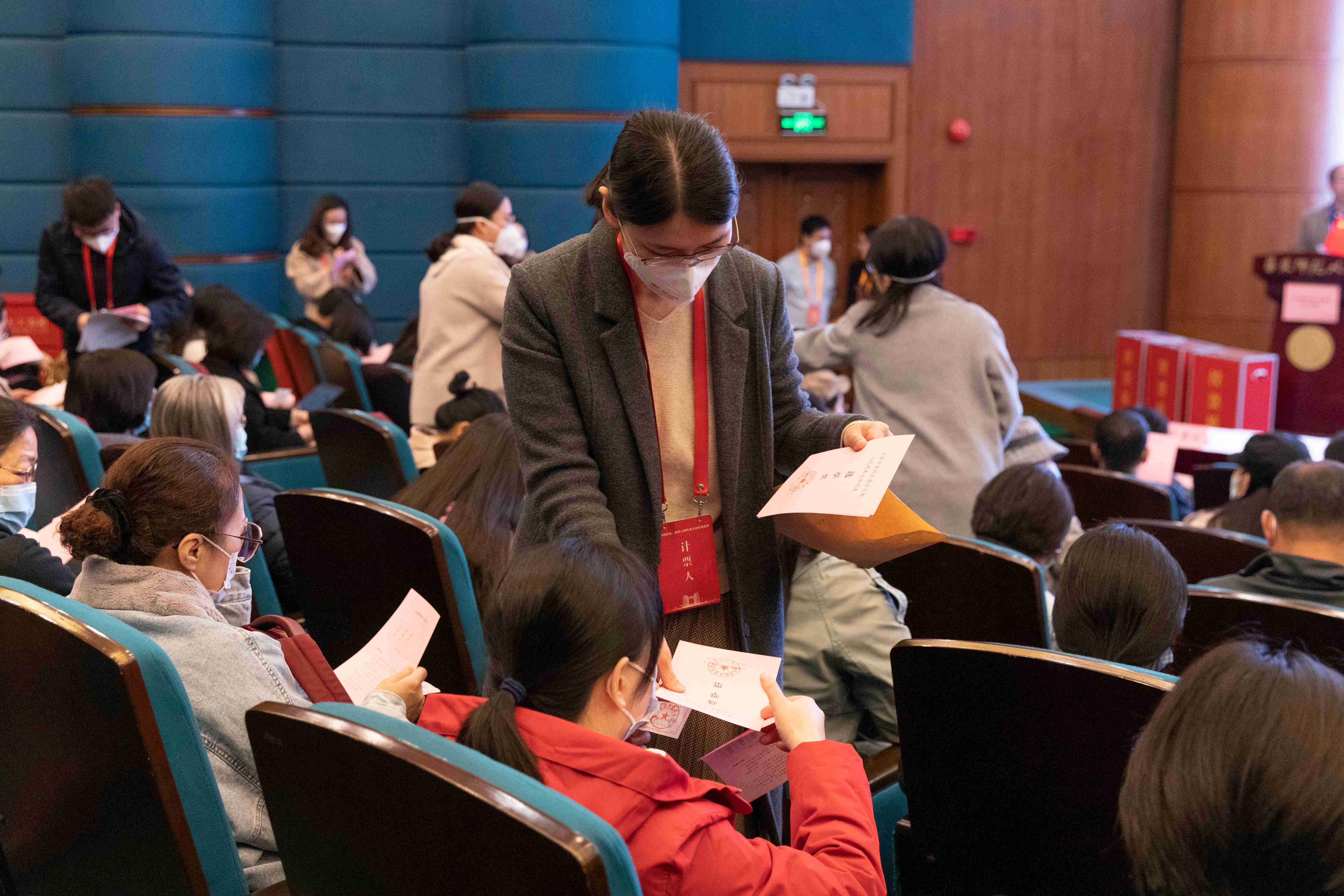 工作人员分发选票