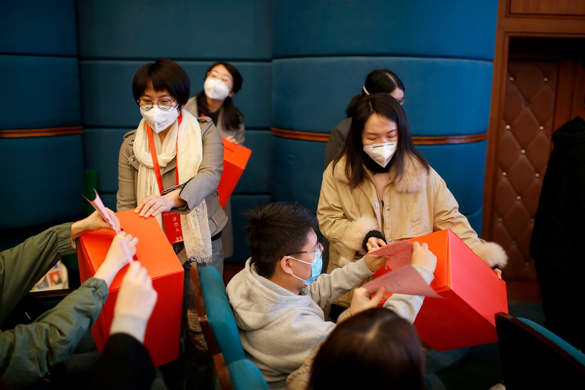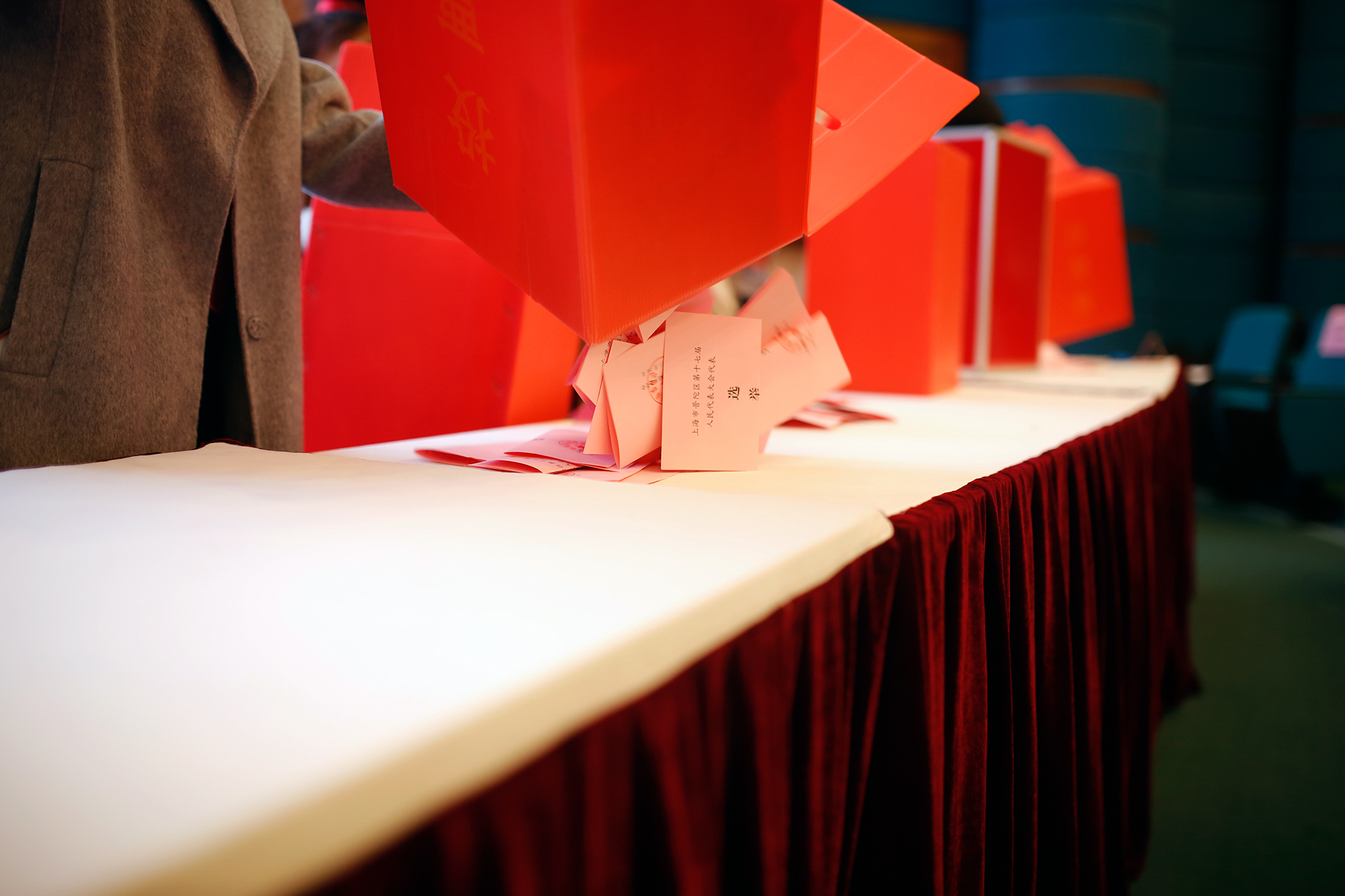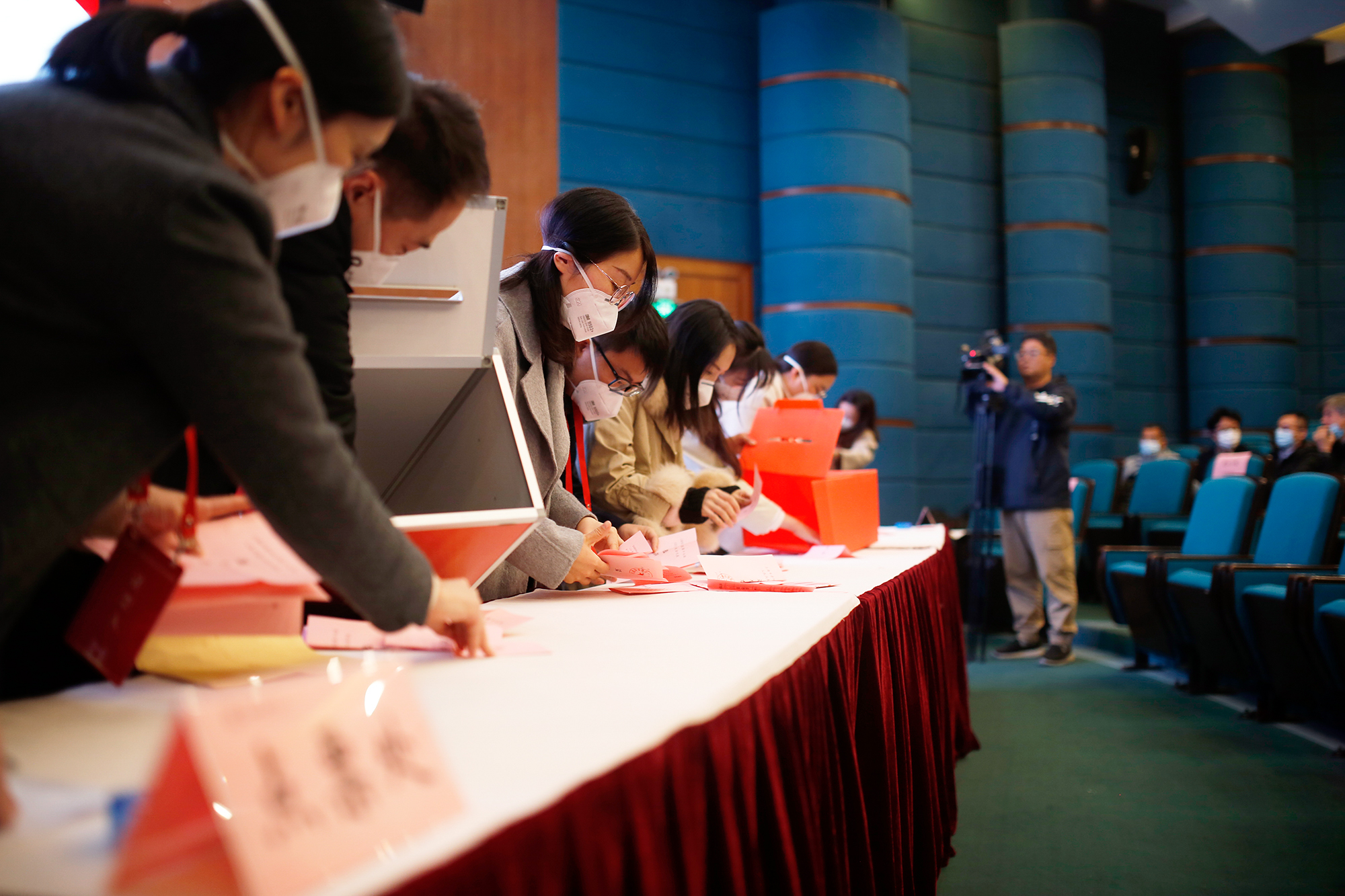 工作人员分发选票